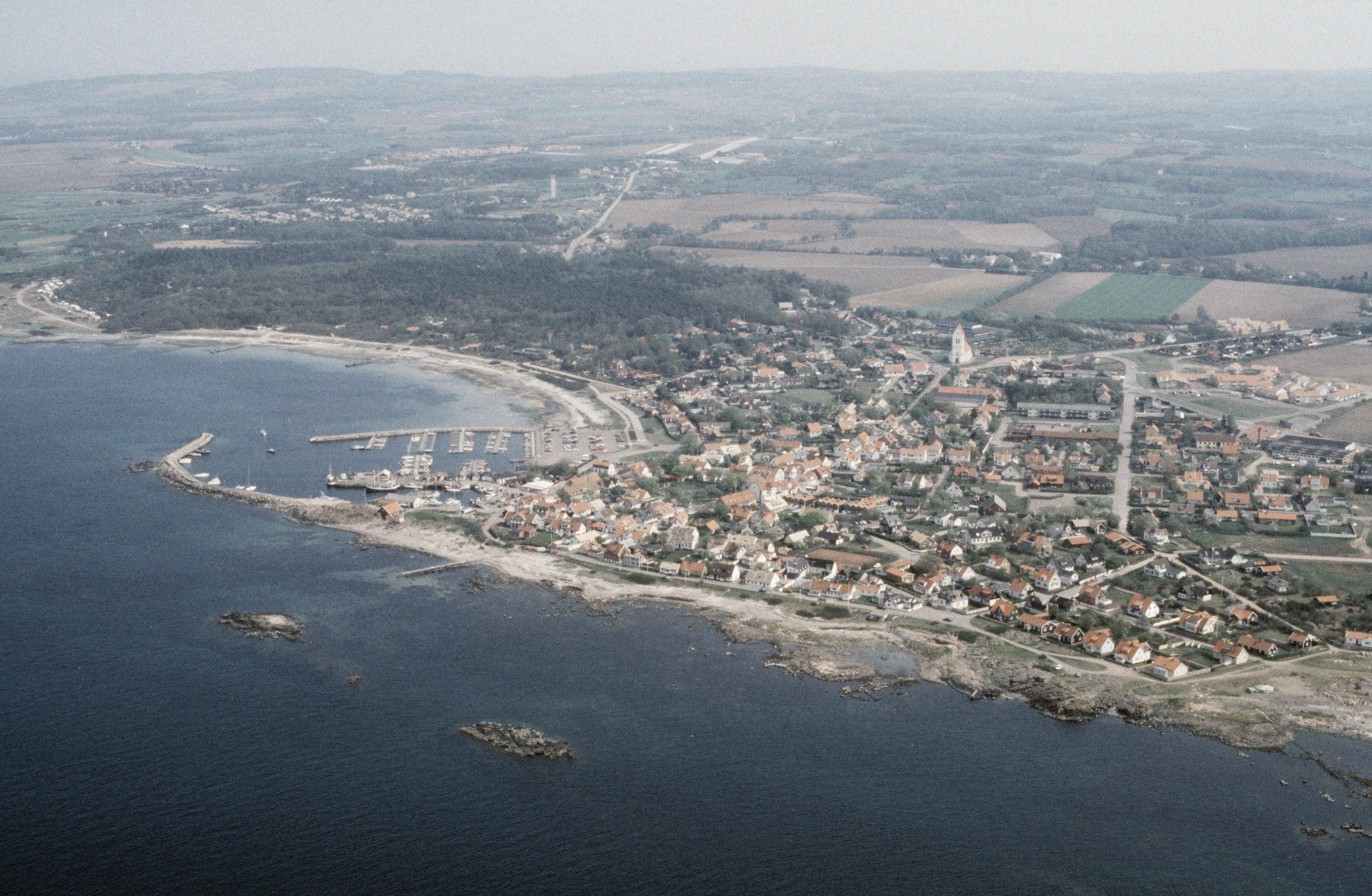 Beskrivning: Tätorten Torekov på Bjärehalvön / Bjärekusten. Torekovs kyrka till höger om bildens mitt. Bilden är tagen mot (väderstreck): NO