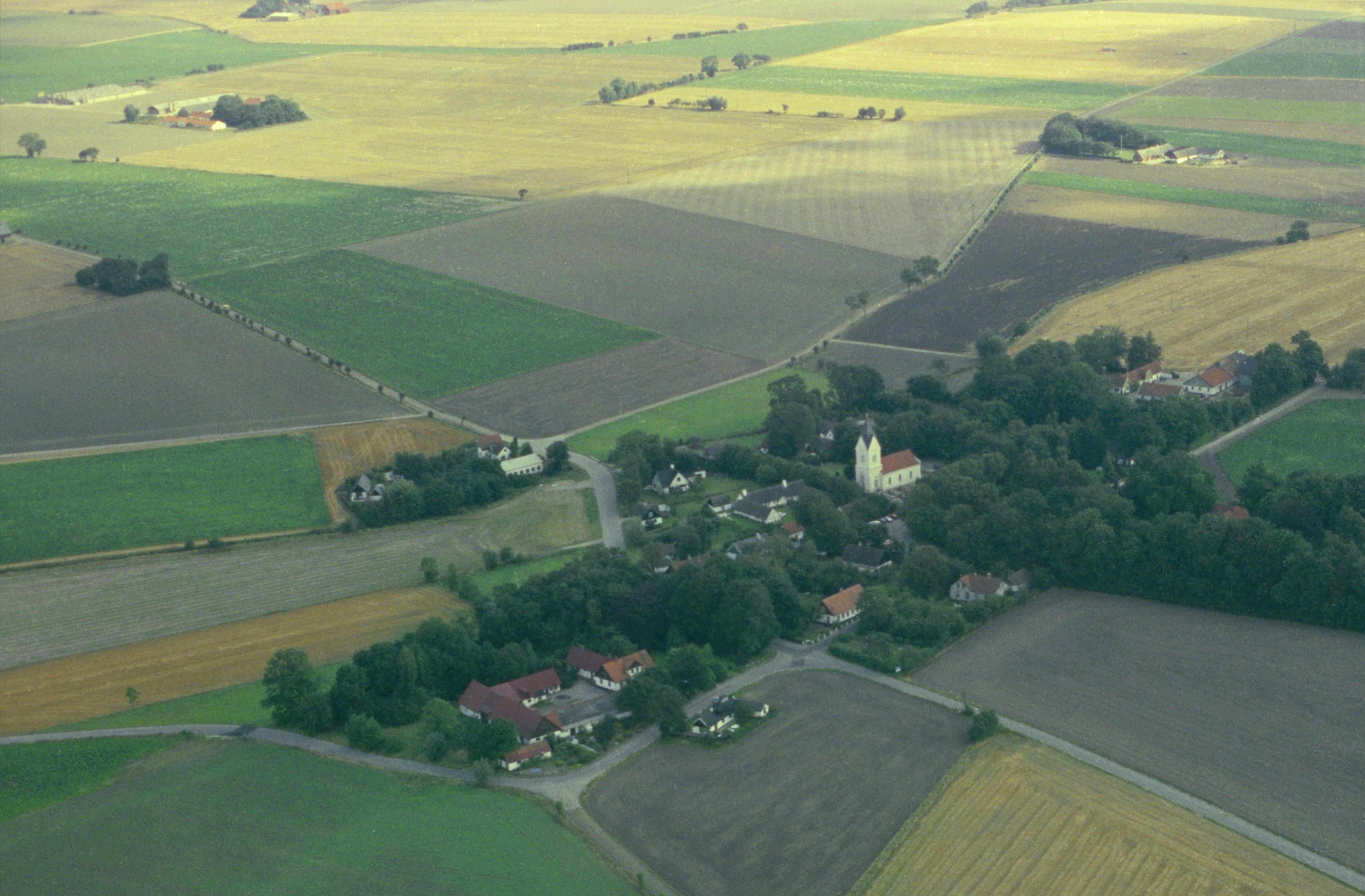Beskrivning: Äspö kyrka och kyrkby. Bilden är tagen mot (väderstreck): NO