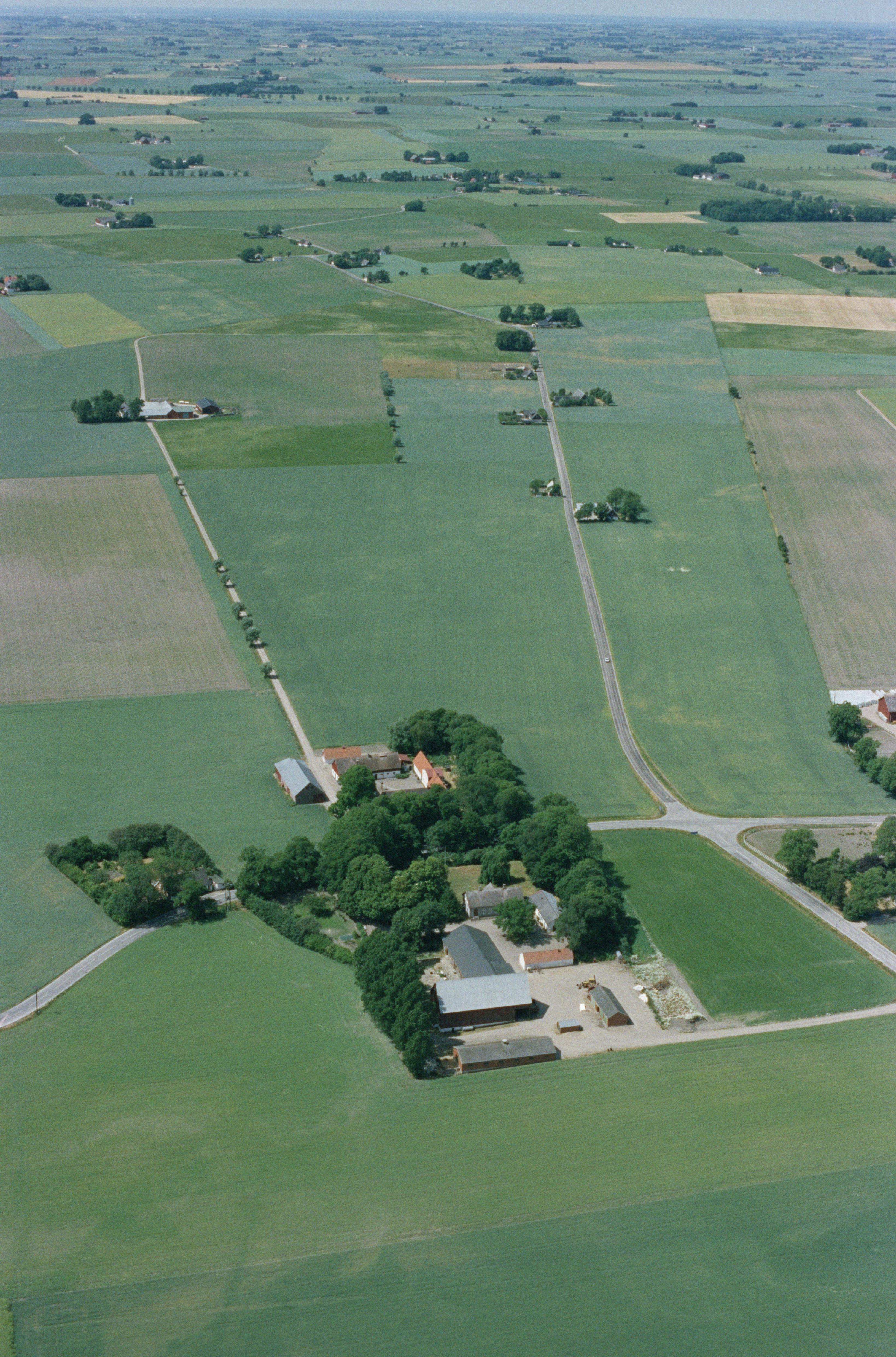 Beskrivning: Brönnestads by. I bildens nedre del Brönnestadsgården i bytomt RAÄnr Östra Klagstorp 27:1. Bilden är tagen mot (väderstreck): V