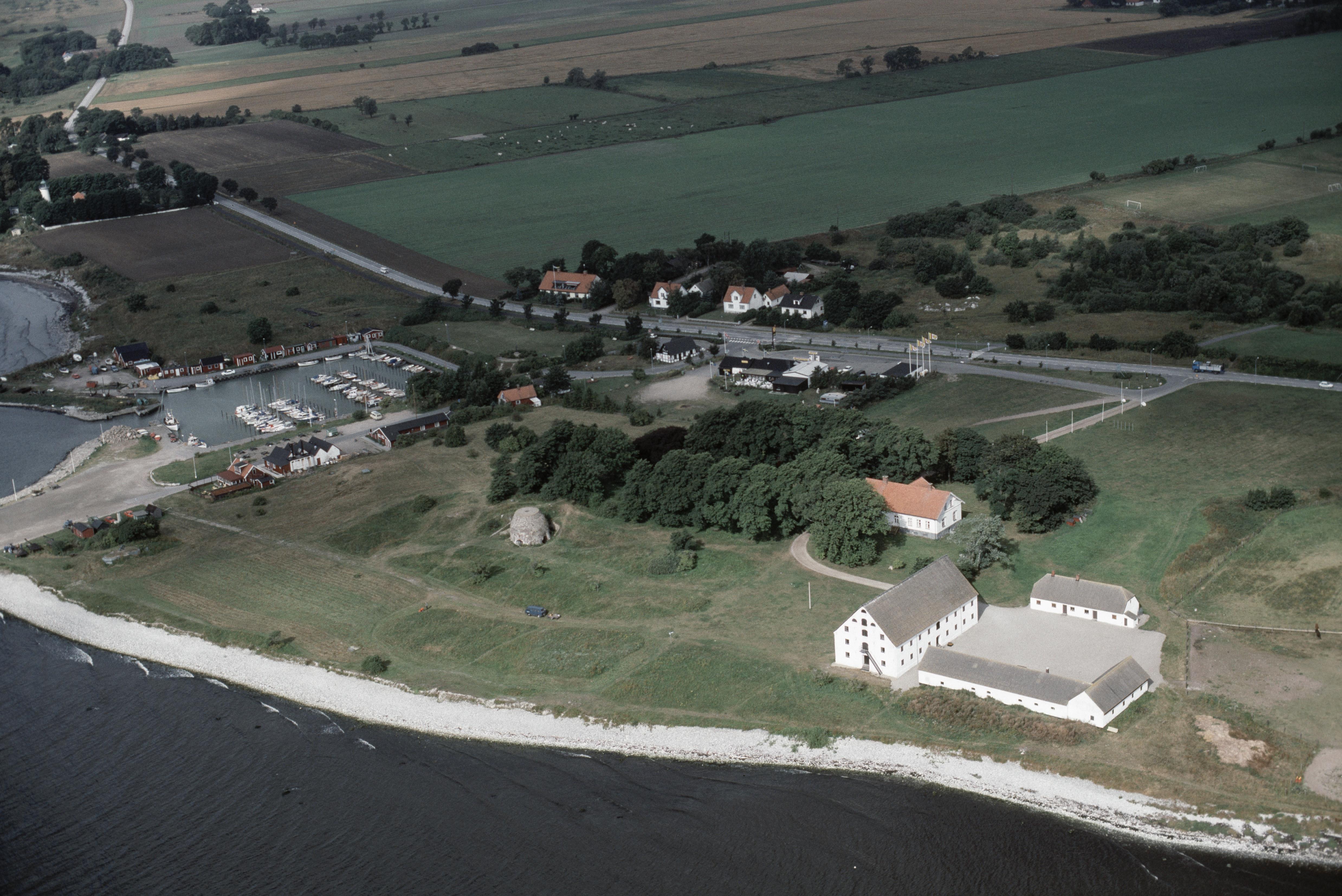 Beskrivning: Kalkutskeppningshamn med Köpmansmagasin RAÄnr Östra Torp 28:1 från 1800-talets början. Bilden är tagen mot (väderstreck): NV