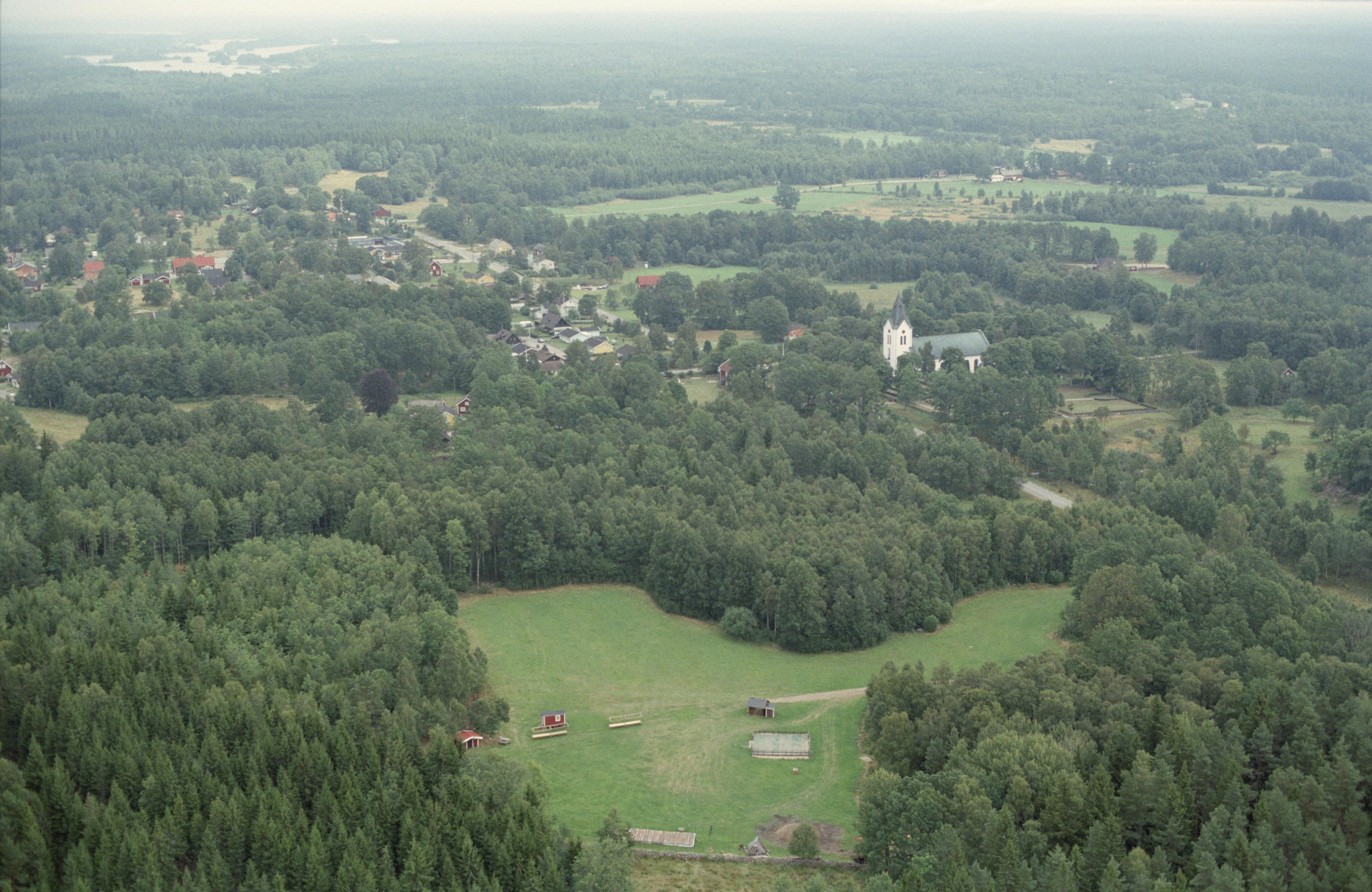 Beskrivning: Agunnaryds kyrka och kyrkby. Bilden är tagen mot (väderstreck): NO