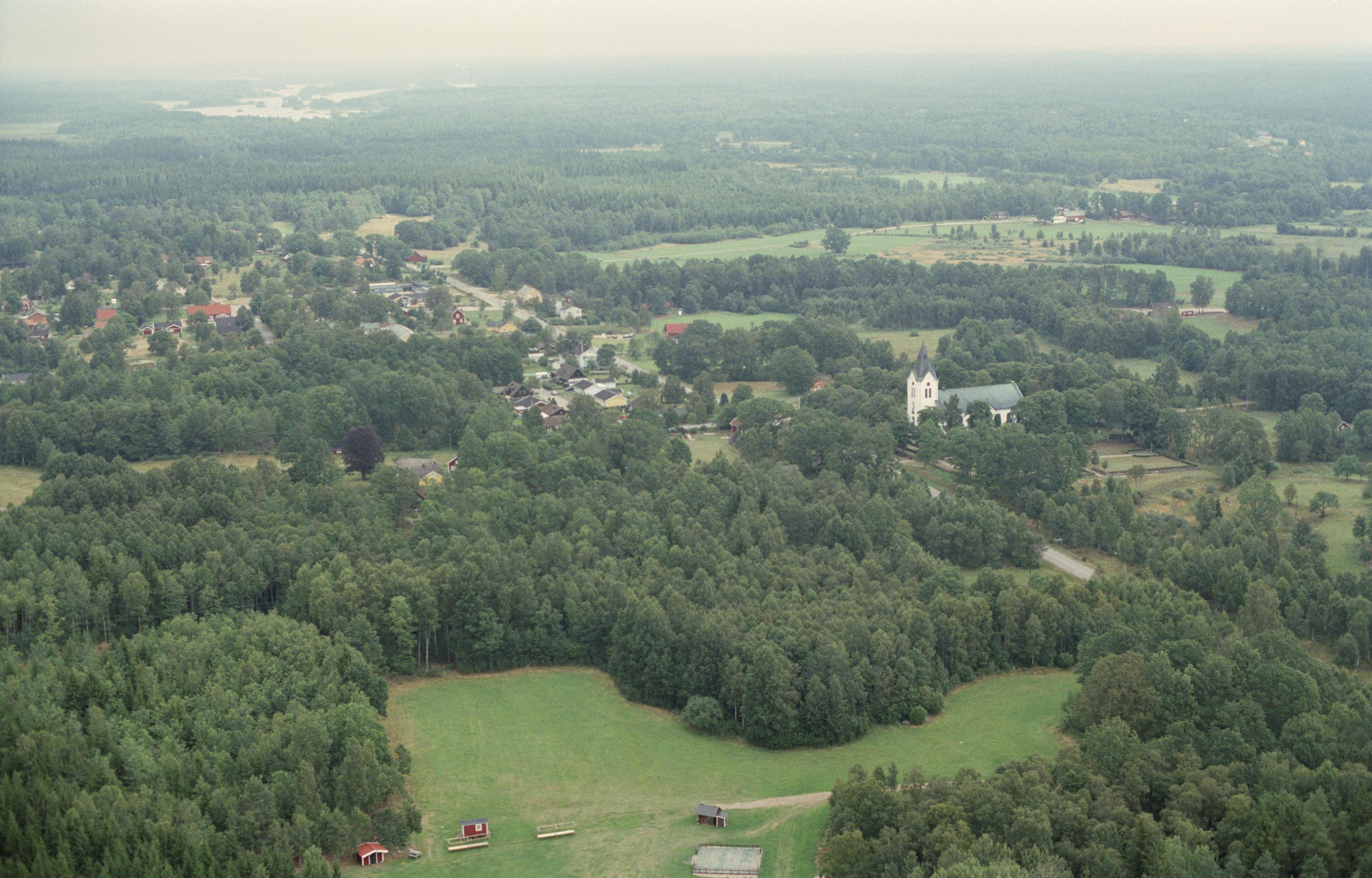 Beskrivning: Agunnaryds kyrka och kyrkby. Bilden är tagen mot (väderstreck): NO