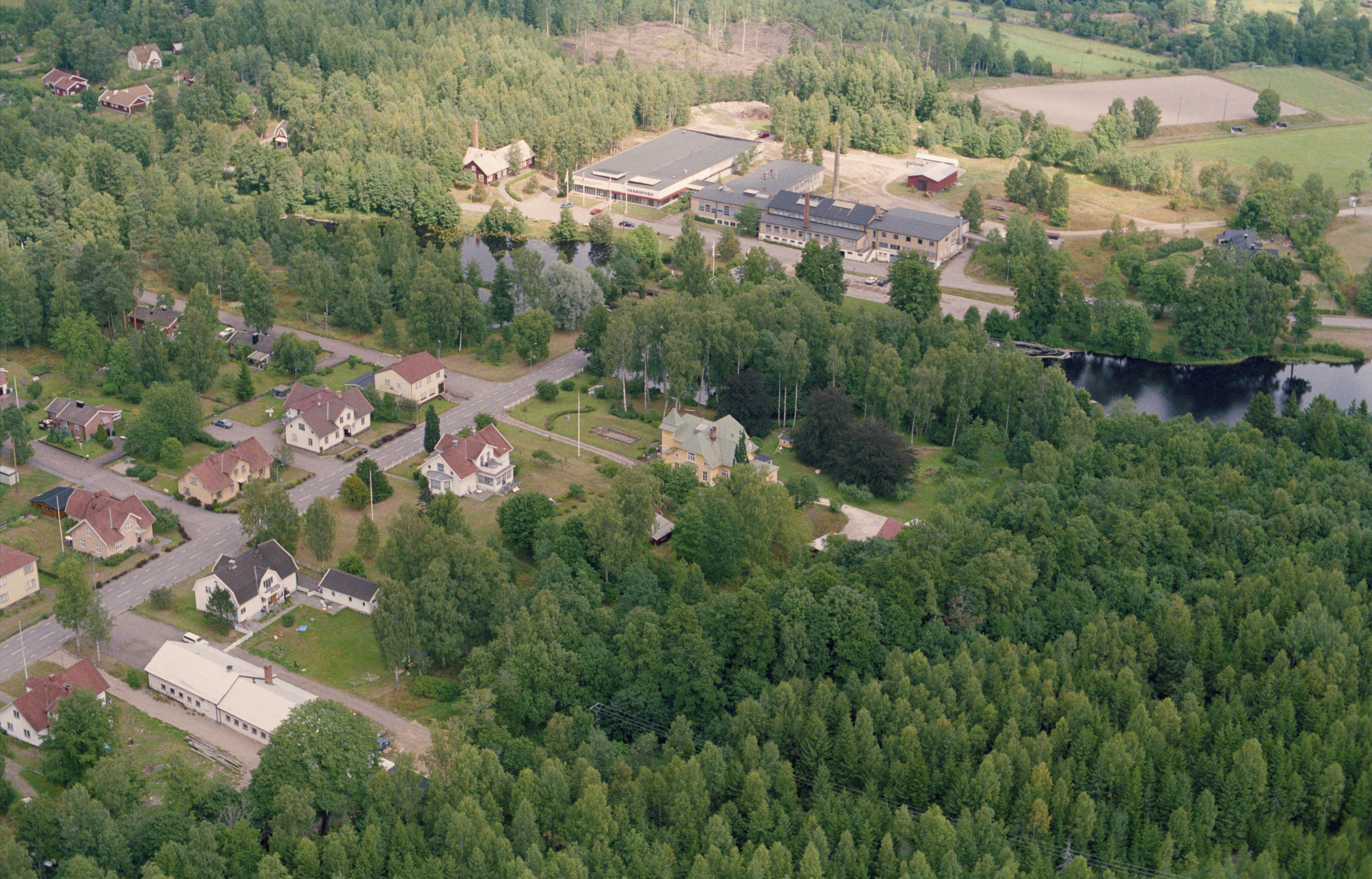Beskrivning: Johansfors bruk (glasbruk) vid Lyckebyån. Bilden är tagen mot (väderstreck): NO
