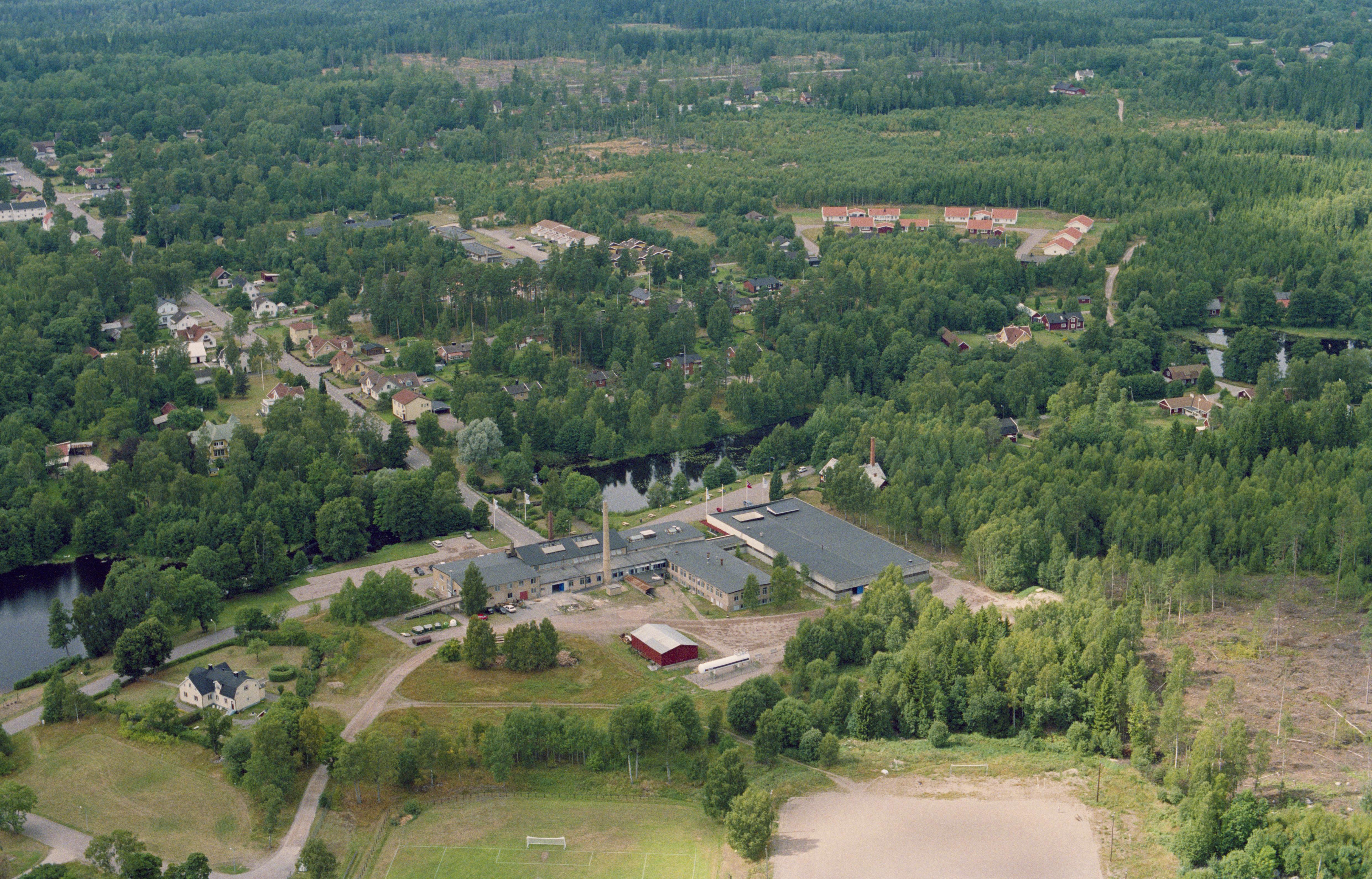 Beskrivning: Johansfors bruk (glasbruk) vid Lyckebyån. Bilden är tagen mot (väderstreck): SV