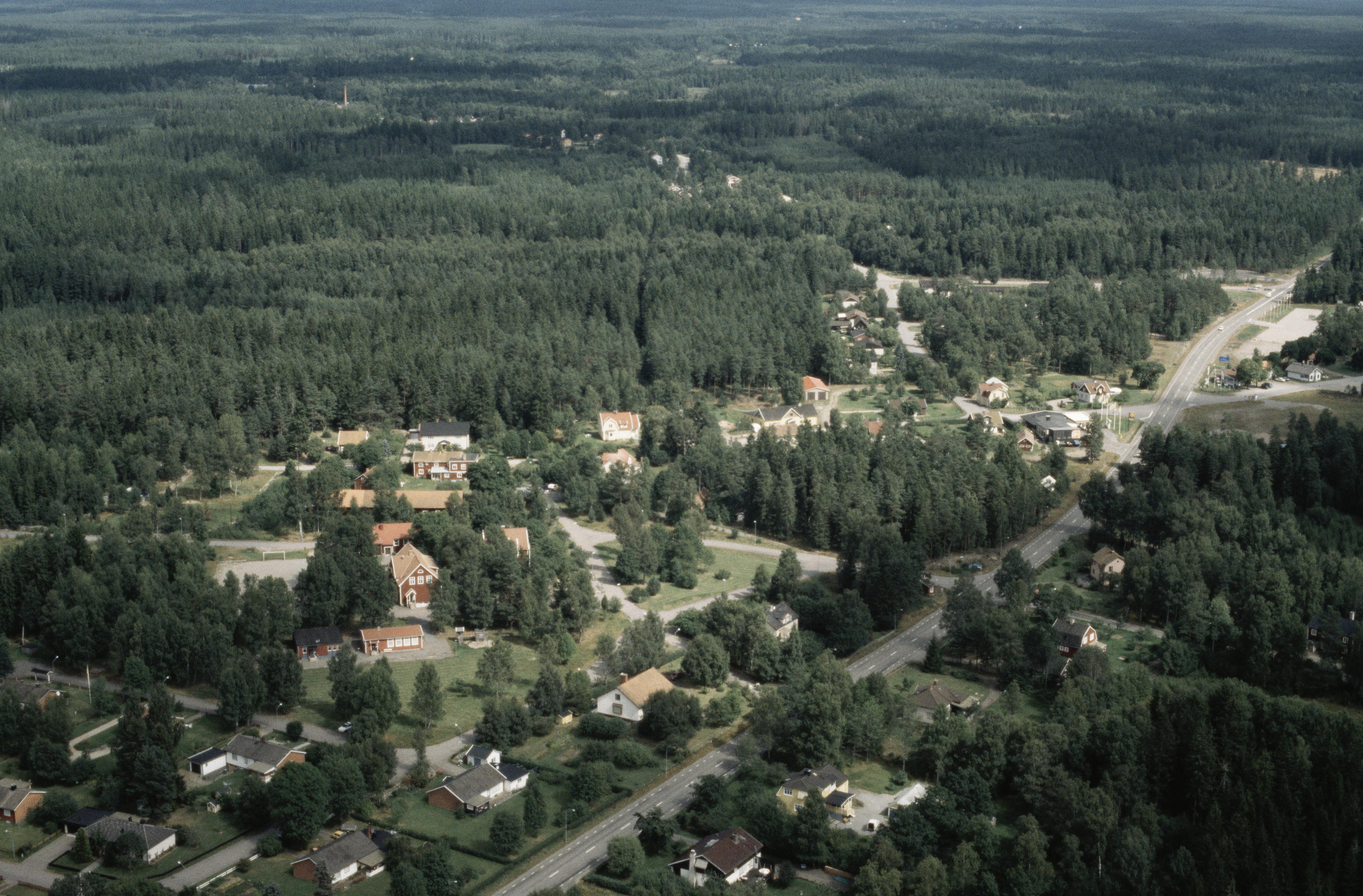 Beskrivning: Eriksmåla tätort. Marknadsplatsen / samlingsplatsen RAÄnr Algutsboda 55:1 och vägmärke Algutsboda 56:1 till höger om bildens mitt. Bilden är tagen mot (väderstreck): NO