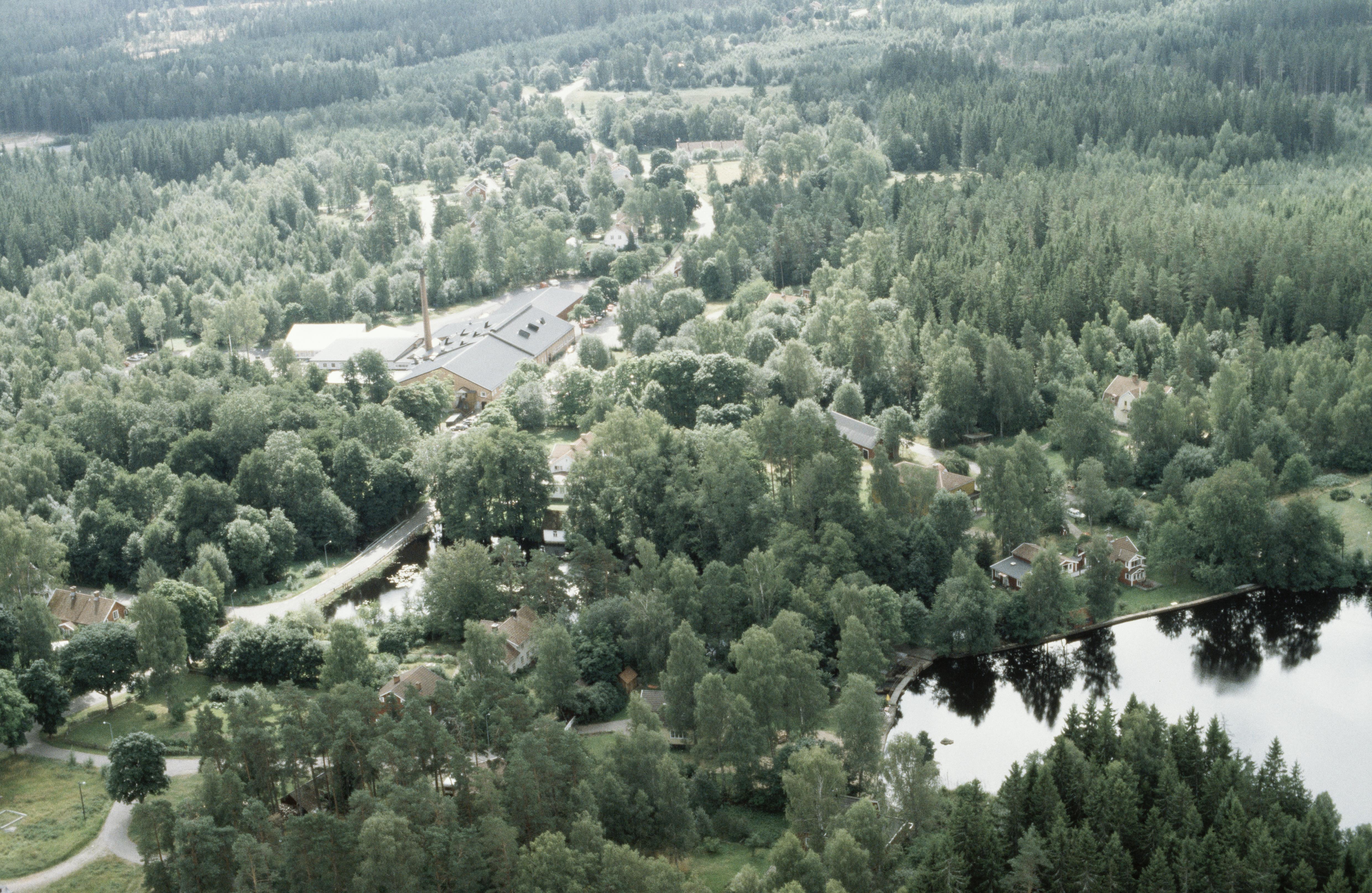 Beskrivning: Åfors bruk (glasbruk) vid Lyckebyån. Bilden är tagen mot (väderstreck): SSO
