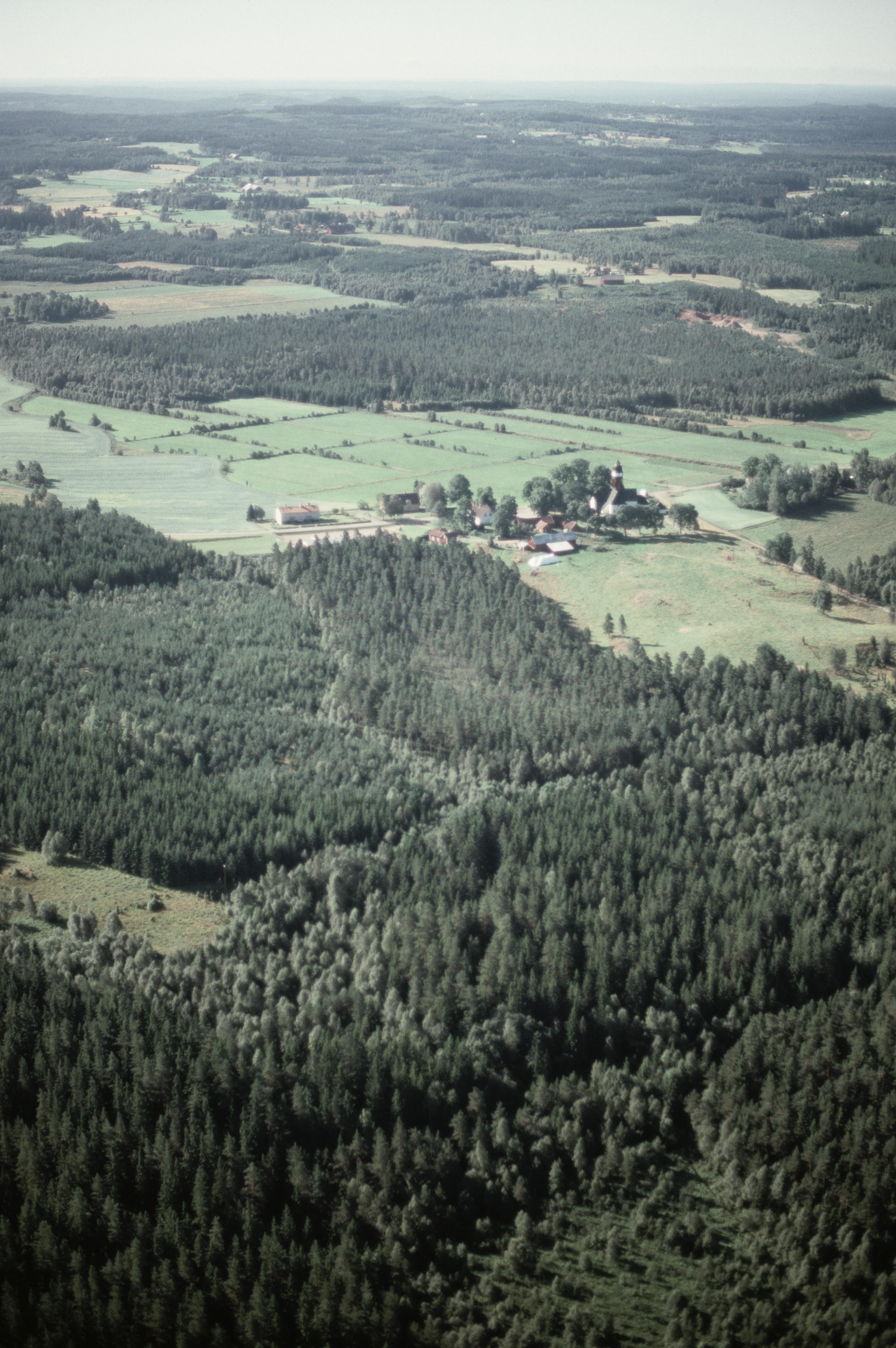 Beskrivning: Fossil åker RAÄnr Askeryd 419 vid bildens mitt. Askeryds kyrka och kyrkby i bildens övre del. Bilden är tagen mot (väderstreck): S