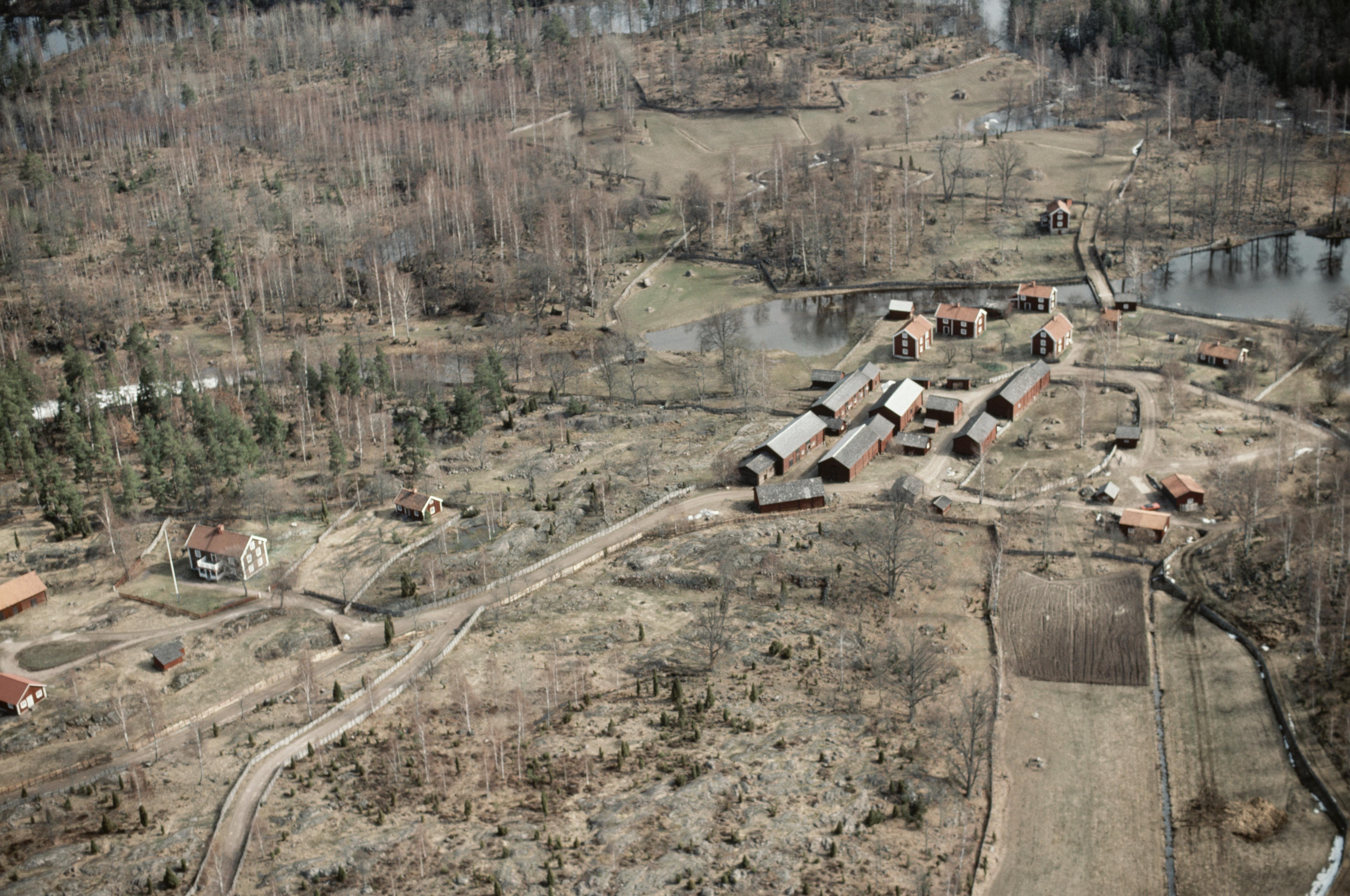 Beskrivning: Stensjö by, en oskiftad klungby och kulturreservat RAÄnr Döderhult 386:1. Bilden är tagen mot (väderstreck): NO