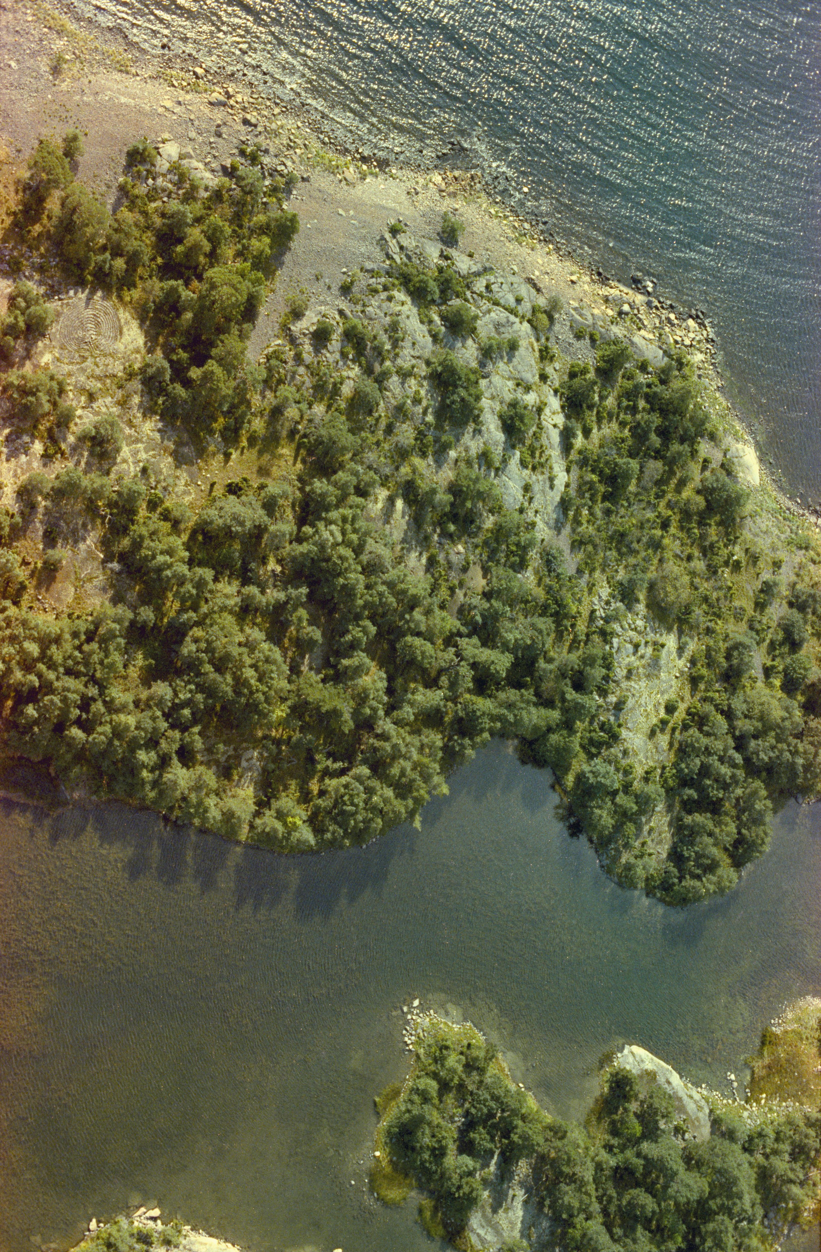 Beskrivning: Stora Kyrkgångsskär i södra delen av Misterhults skärgård. Labyrint RAÄnr Misterhult 407:1 och kolerakyrkogård RAÄnr Misterhult 775:1 i bildens övre del. Bilden är tagen mot (väderstreck): S