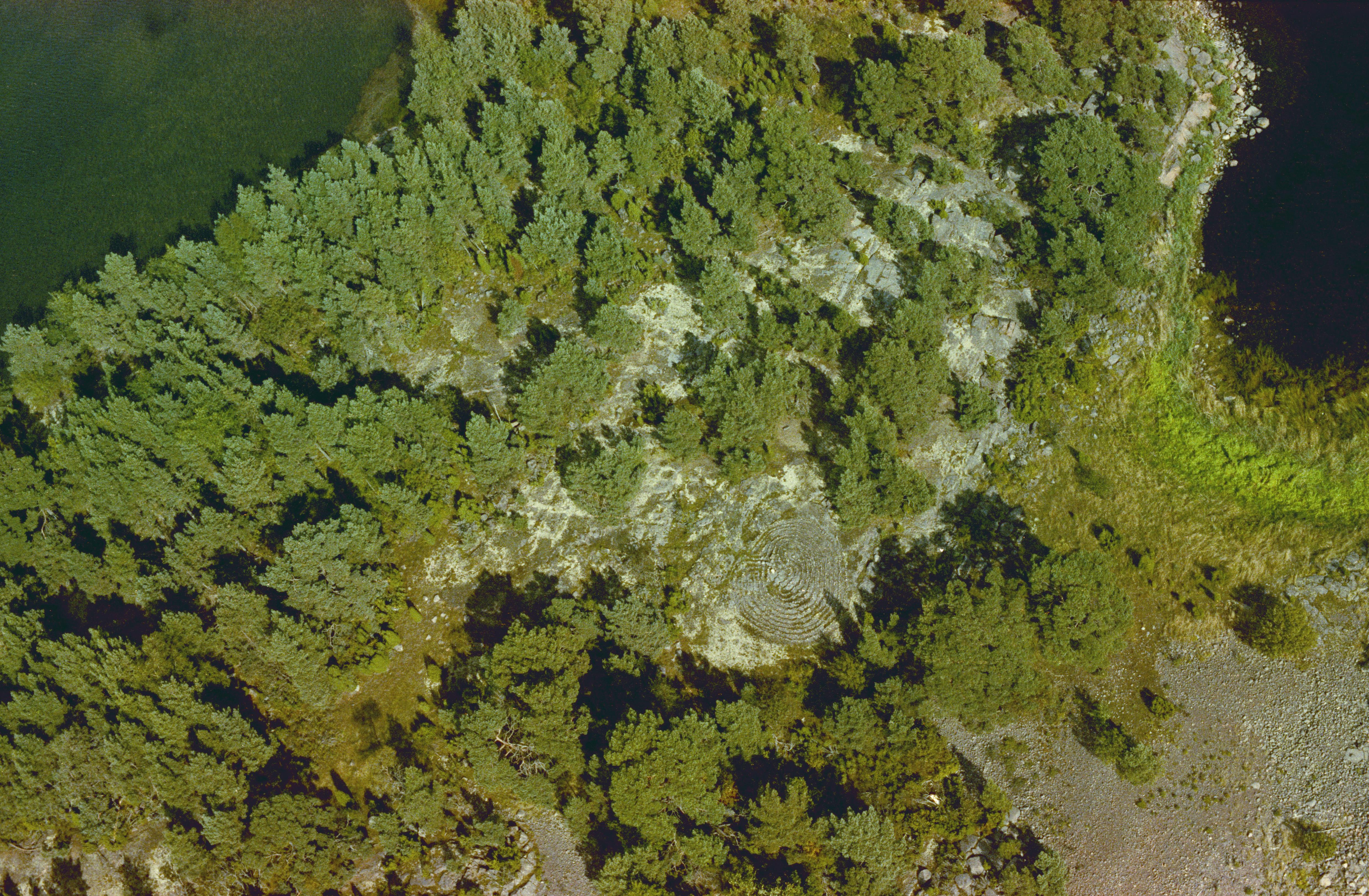 Beskrivning: Stora Kyrkgångsskär med omkransande öar i södra delen av Misterhults skärgård. Labyrint RAÄnr Misterhult 407:1 och kolerakyrkogård RAÄnr Misterhult 775:1. Bilden är tagen mot (väderstreck): N