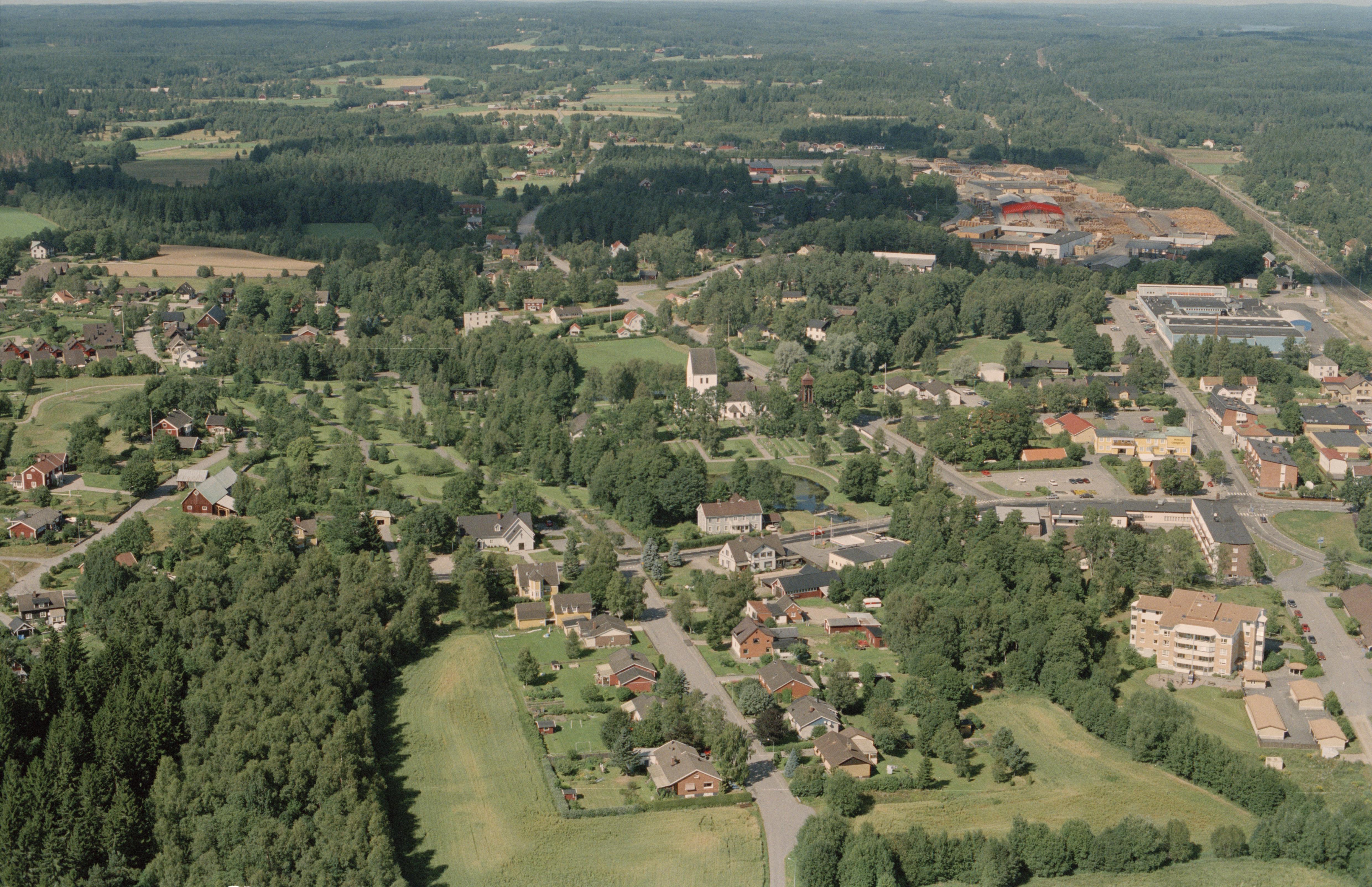 Beskrivning: Moheda tätort. Moheda kyrka vid bildens mitt. Bilden är tagen mot (väderstreck): NNV