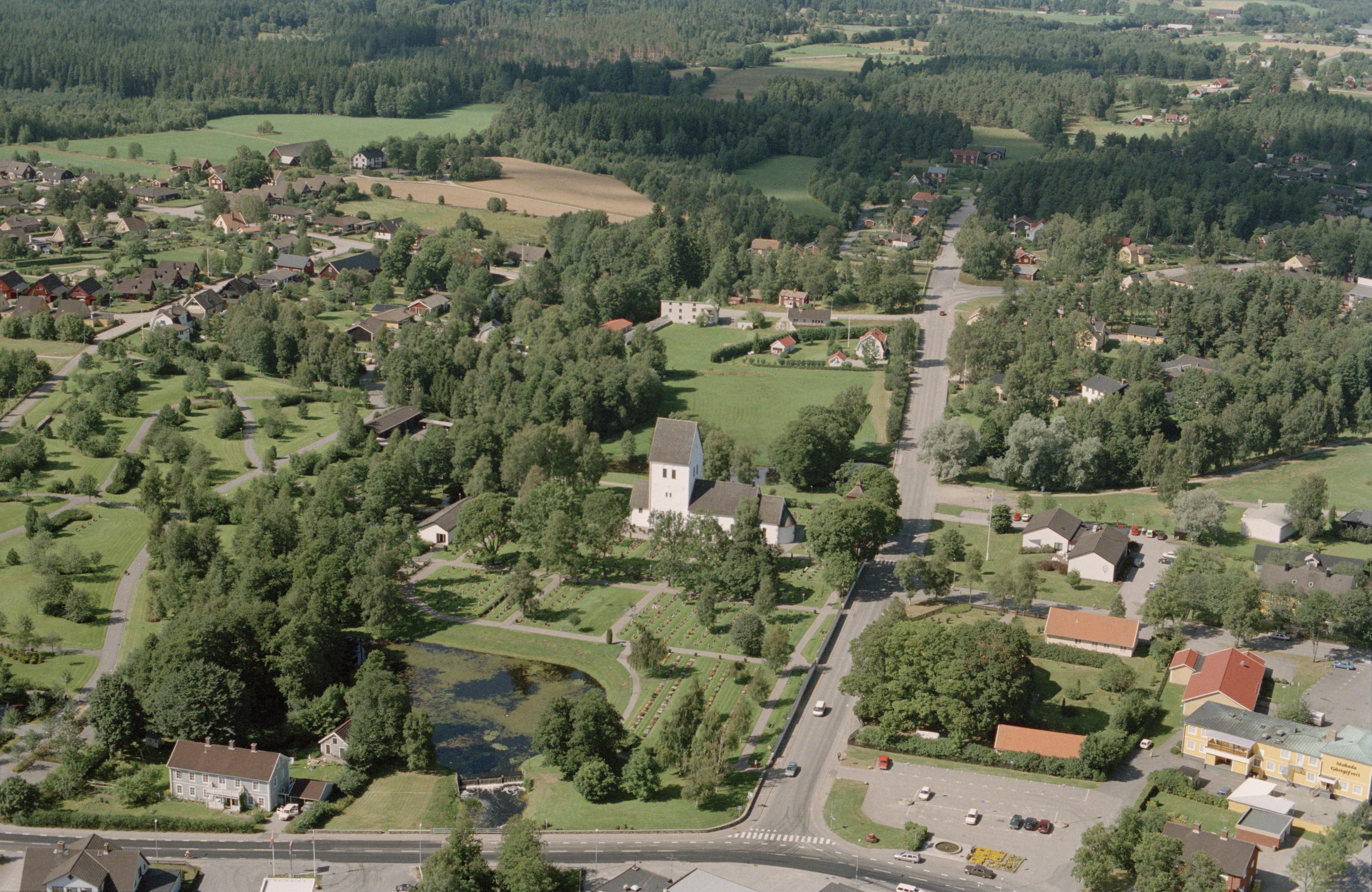 Beskrivning: Moheda tätort. Moheda kyrka vid bildens mitt. Bilden är tagen mot (väderstreck): NV
