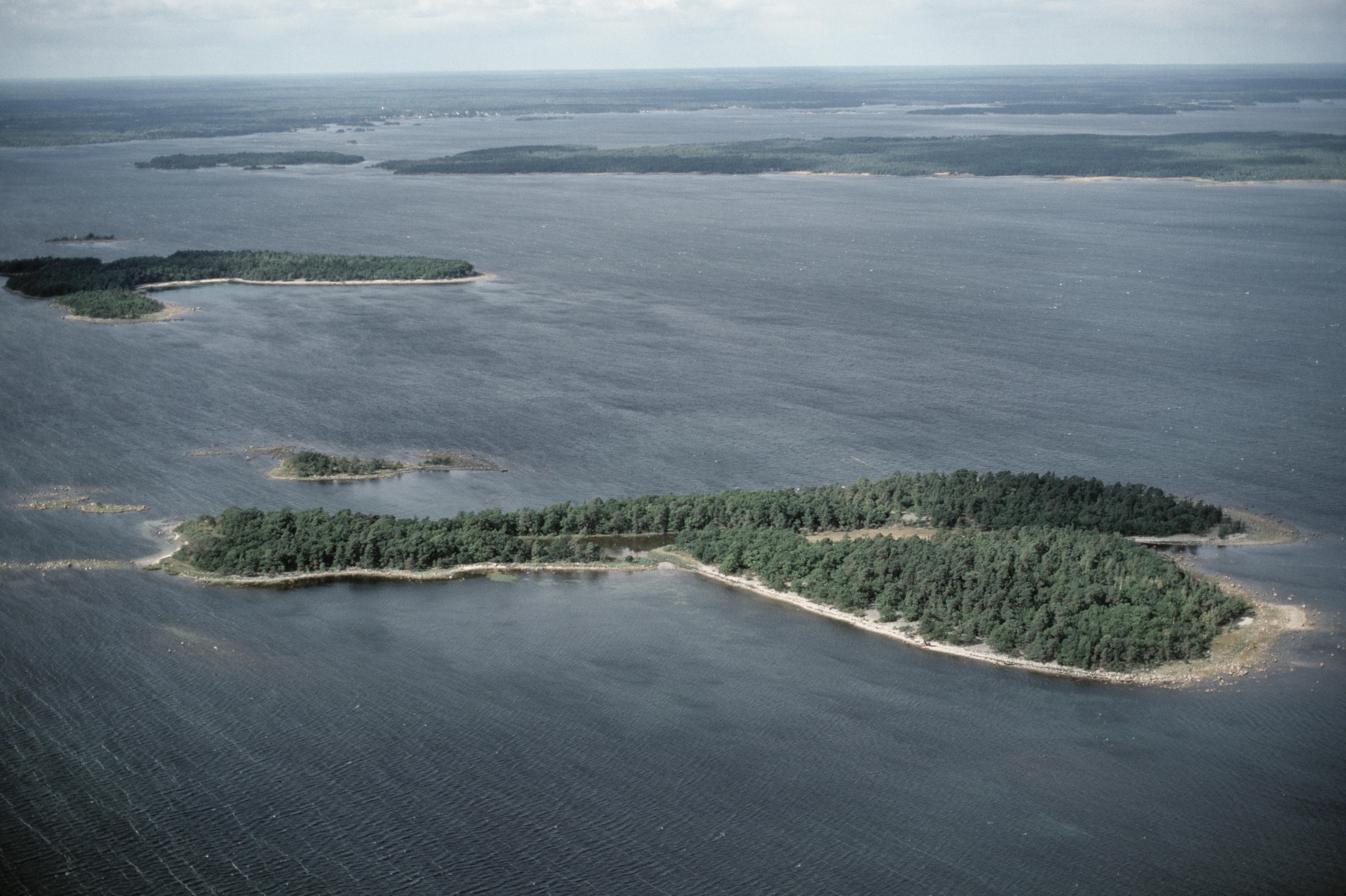 Beskrivning: Taktö i Vållö naturreservat. På ön finns flera fornlämningar, bl.a. fiskeläge RAÄnr Mönsterås 340:1. Sandö uppe till vänster. Bilden är tagen mot (väderstreck): V