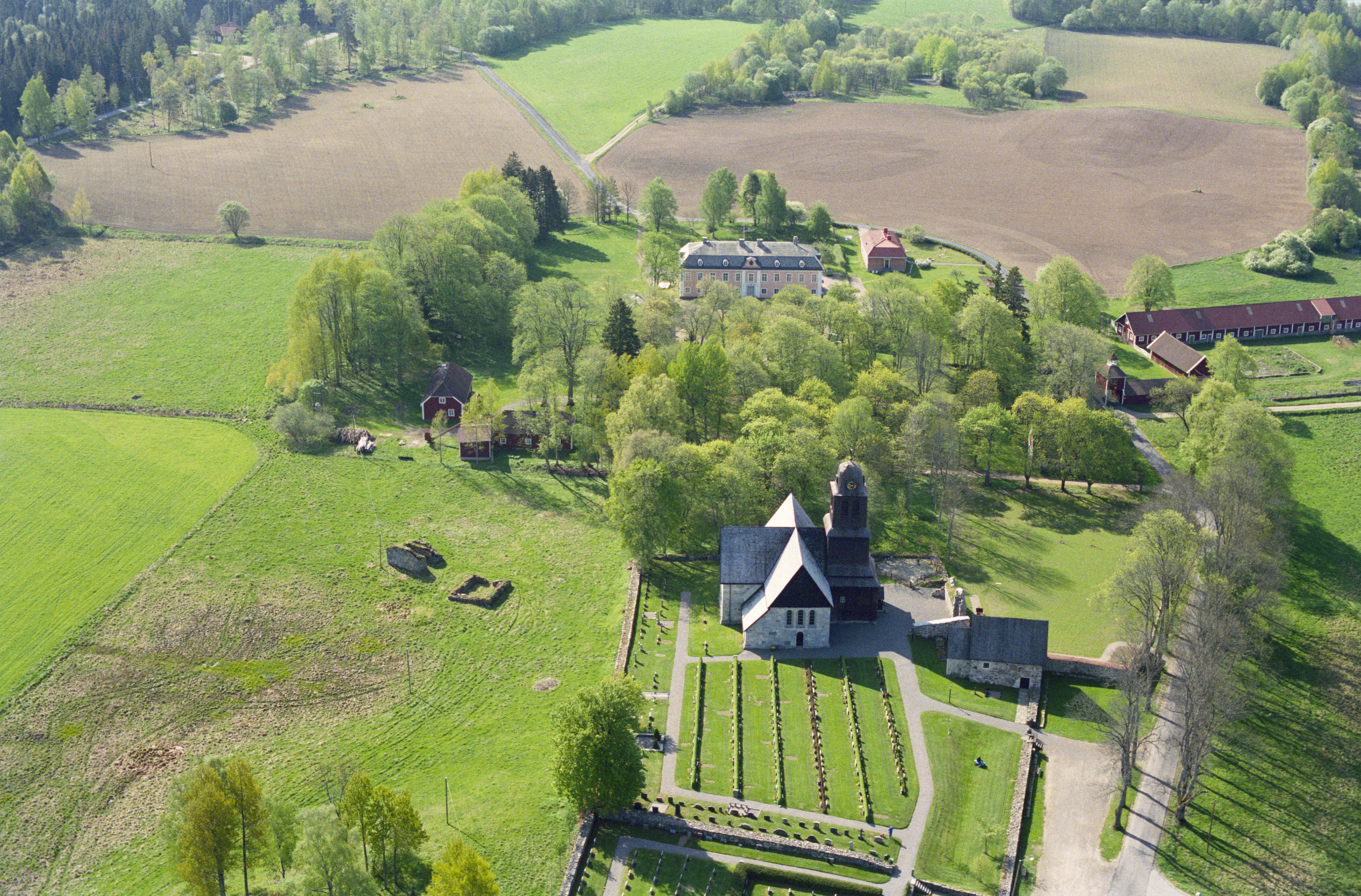 Beskrivning: Nydala herrgård, Nydala kyrka, Nydala kloster RAÄnr Nydala 17:1 och Nydala slottsruin Nydala 202:1. Bilden är tagen mot (väderstreck): SSO