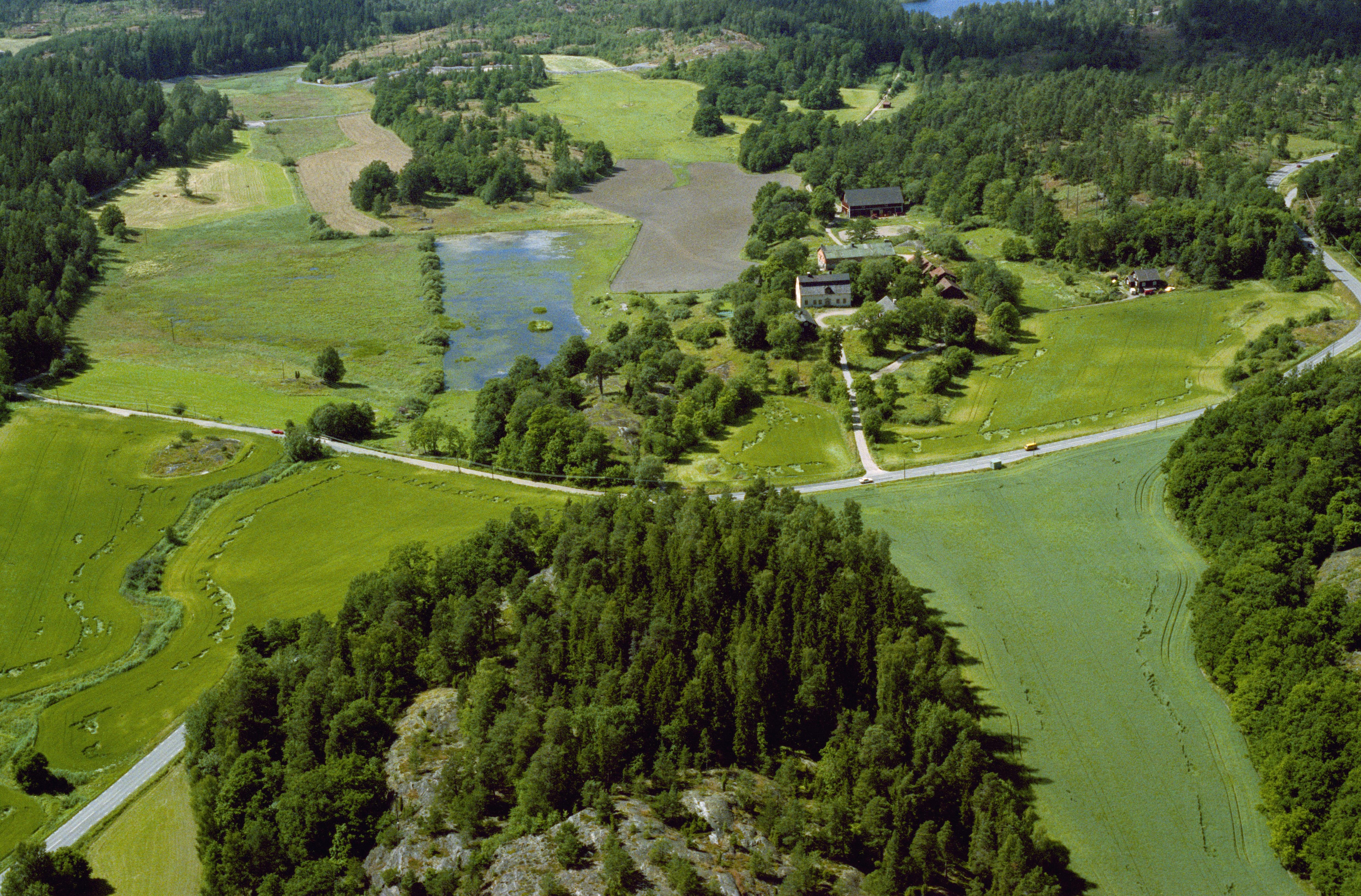 Beskrivning: Lämshaga herrgård vid sjön Dyn. Vid herrgården bytomt RAÄnr Ingarö 58:1. Bilden är tagen mot (väderstreck): V