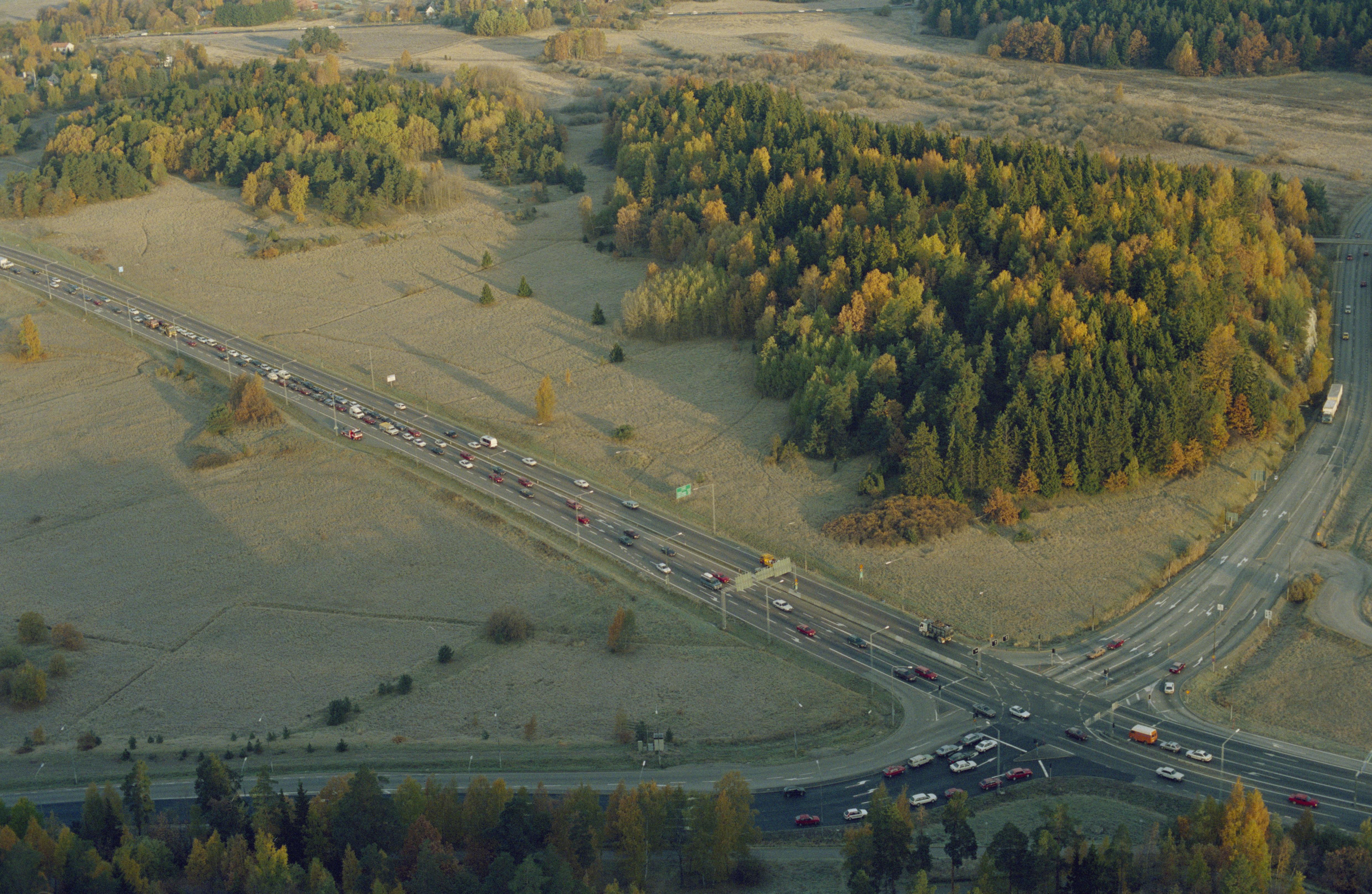 Beskrivning: Hjulstamotet vid Hjulsta gamla tomt (i tidigare Spånga socken). Uppe till höger gravfält RAÄnr Stockholm 615, Spånga 96:1 och boplats Spånga 214:1 m.fl. Bilden är tagen mot (väderstreck): N