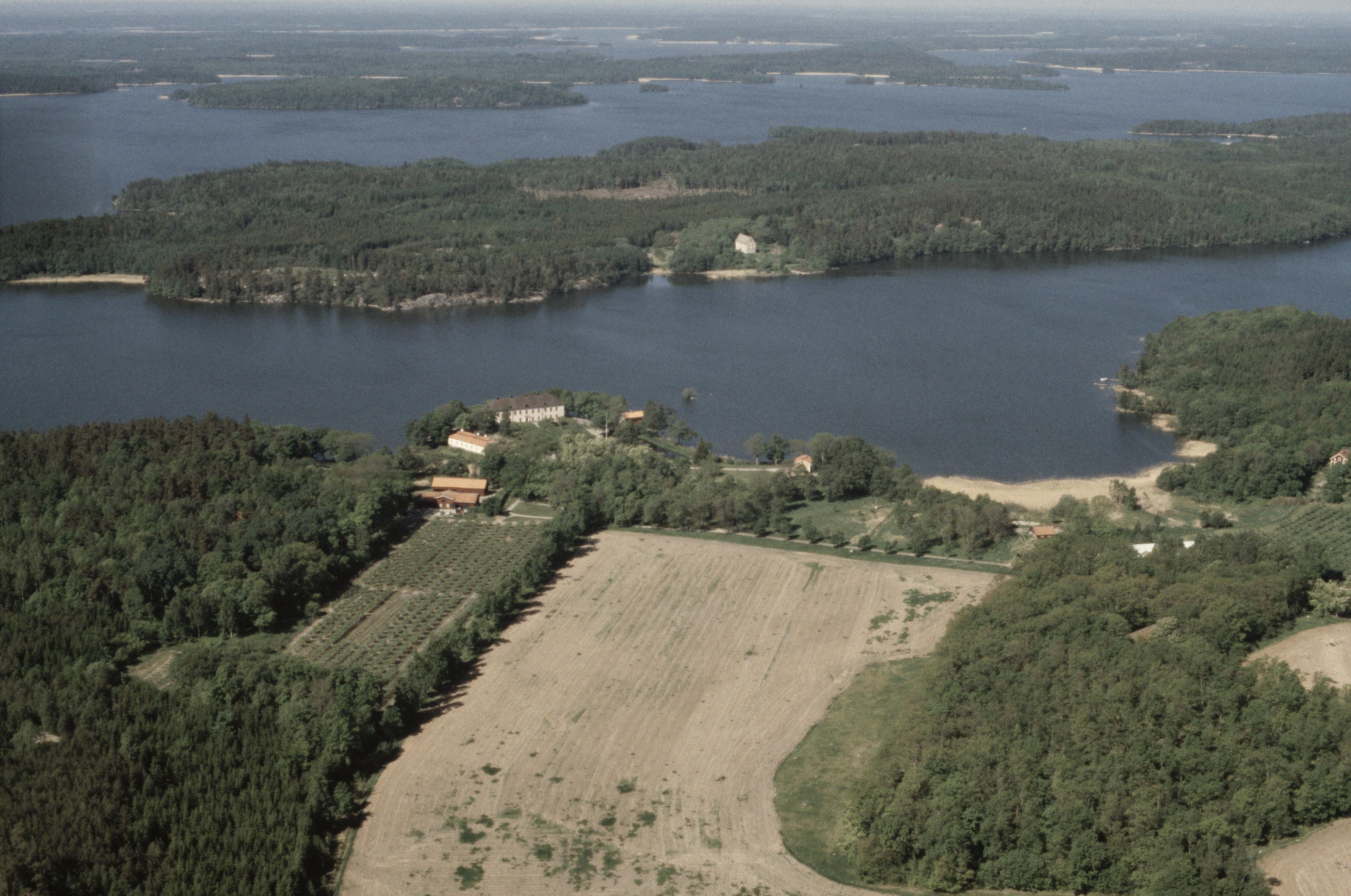 Beskrivning: Anmärkning (övrig): Riksintresse-nr/namn: C62 - Bond-Arnö och Grönsöö. Socken: Kungs-Husby och f.d. Arnö sn) Utredningsområde. Motivering: Småbrutet herrgårdslandskap av medeltida ursprung beläget i Mälaren med flera välbevarade gårdsbyggnader från medeltid och framåt. (Fornlämningsmiljö, Kyrkomiljö,Vägmiljö, Slottsmiljö). - Uttryck för riksintresset: På Arnö småbrutet odlingslandskap, yngre järnåldersgravfält, Arnöbergs herrgårdsmiljö med huvudbyggnad från 1700-talet, medeltida kyrka, ruin av Strandby medeltida sätesgård, prästgård, skola, torp och ålderdomligt vägnät samt Utö hus från 1400-talet, ett av landets mest välbevarade medeltida herresäten. På Grönsö: yngre järnåldersgravfält, torp, den ovanligt välbevarade slottsanläggningen Grönsöö med huvudbyggnad från 1600-talet, park- och trädgårdsanläggning. [Texten uppdaterat av Riksantikvarieämbetet våren 2013.] Beskrivning: Grönsö slott (äldre stavning Grönsöö slott), byggnadsminne RAÄnr Kungs-Husby 89:1, vid Grönsösundet i Mälaren. I bildens övre del statligt byggnadsminne Utö hus RAÄnr Kungs-Husby 70:1 på Arnö. Bilden är tagen mot (väderstreck): V Fotosyfte: Flygbildsdokumentation