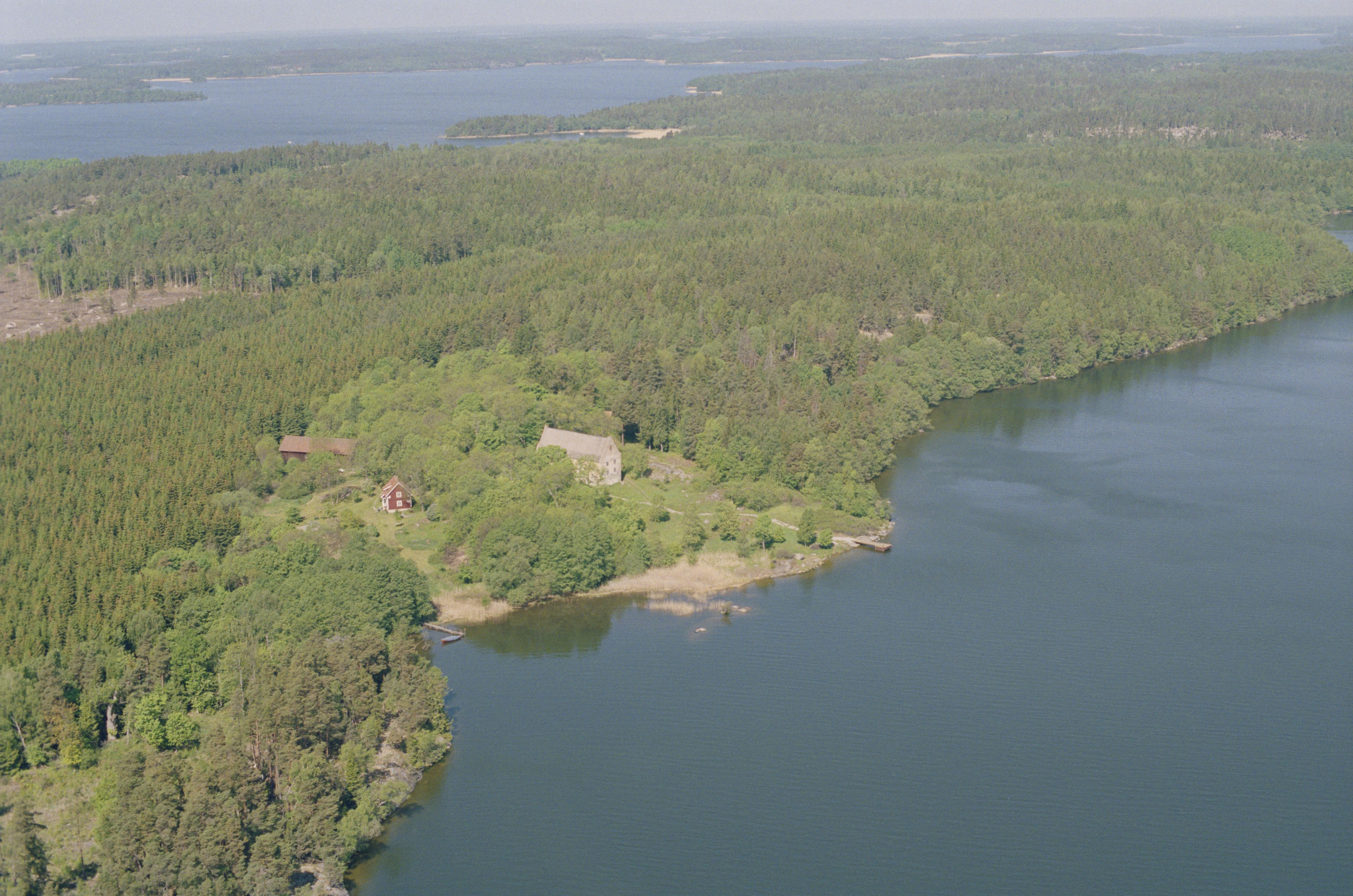 Beskrivning: Statligt byggnadsminne Utö hus RAÄnr Kungs-Husby 70:1 på Arnö vid Grönsösundet i Mälaren. Vid borgen magasin Kungs-Husby 75:1, gravfält Kungs-Husby 68:1 m.fl. Bilden är tagen mot (väderstreck): NV