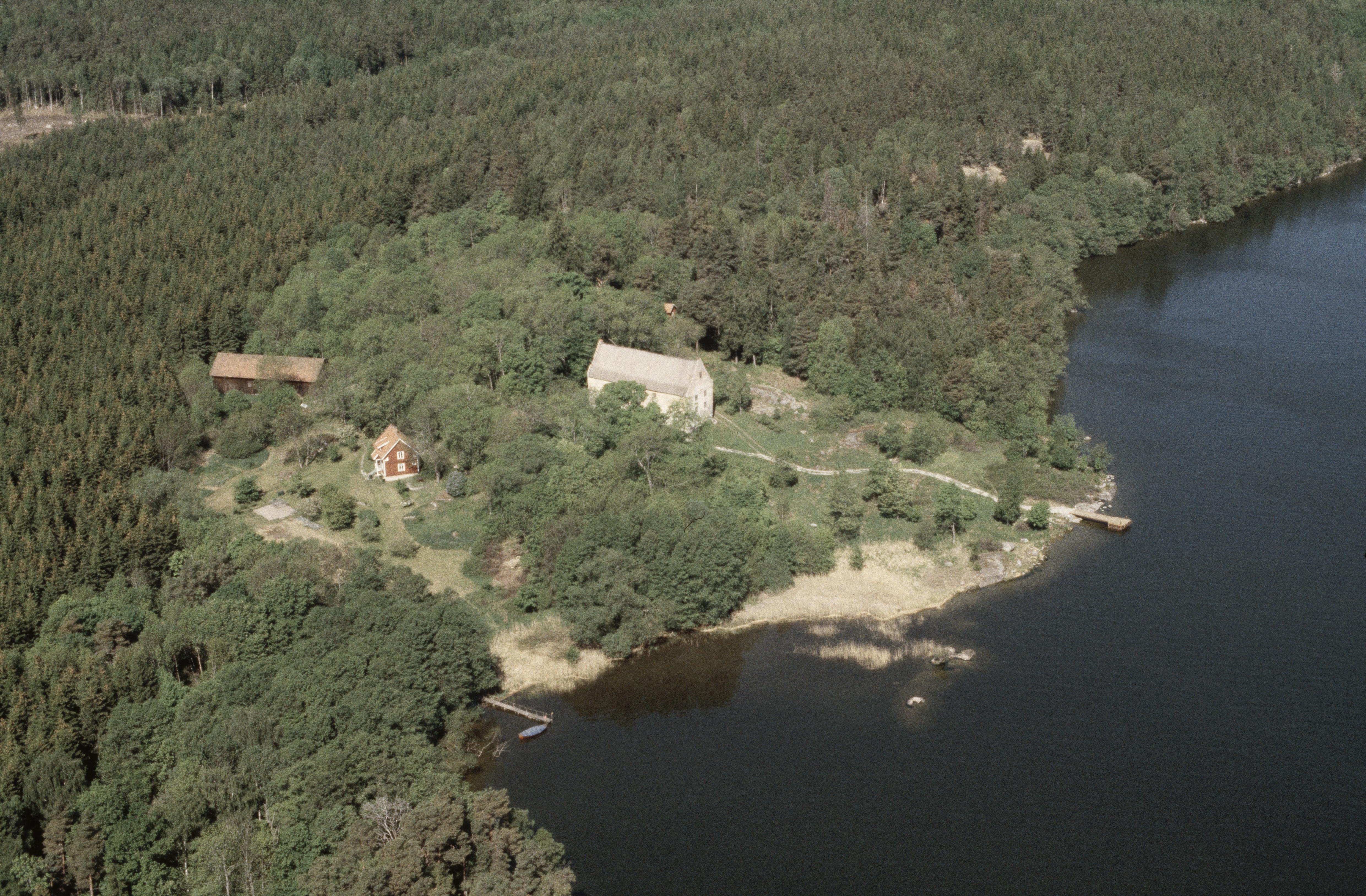 Beskrivning: Statligt byggnadsminne Utö hus RAÄnr Kungs-Husby 70:1 på Arnö vid Grönsösundet i Mälaren. Vid borgen magasin Kungs-Husby 75:1, gravfält Kungs-Husby 68:1 m.fl. Bilden är tagen mot (väderstreck): VNV