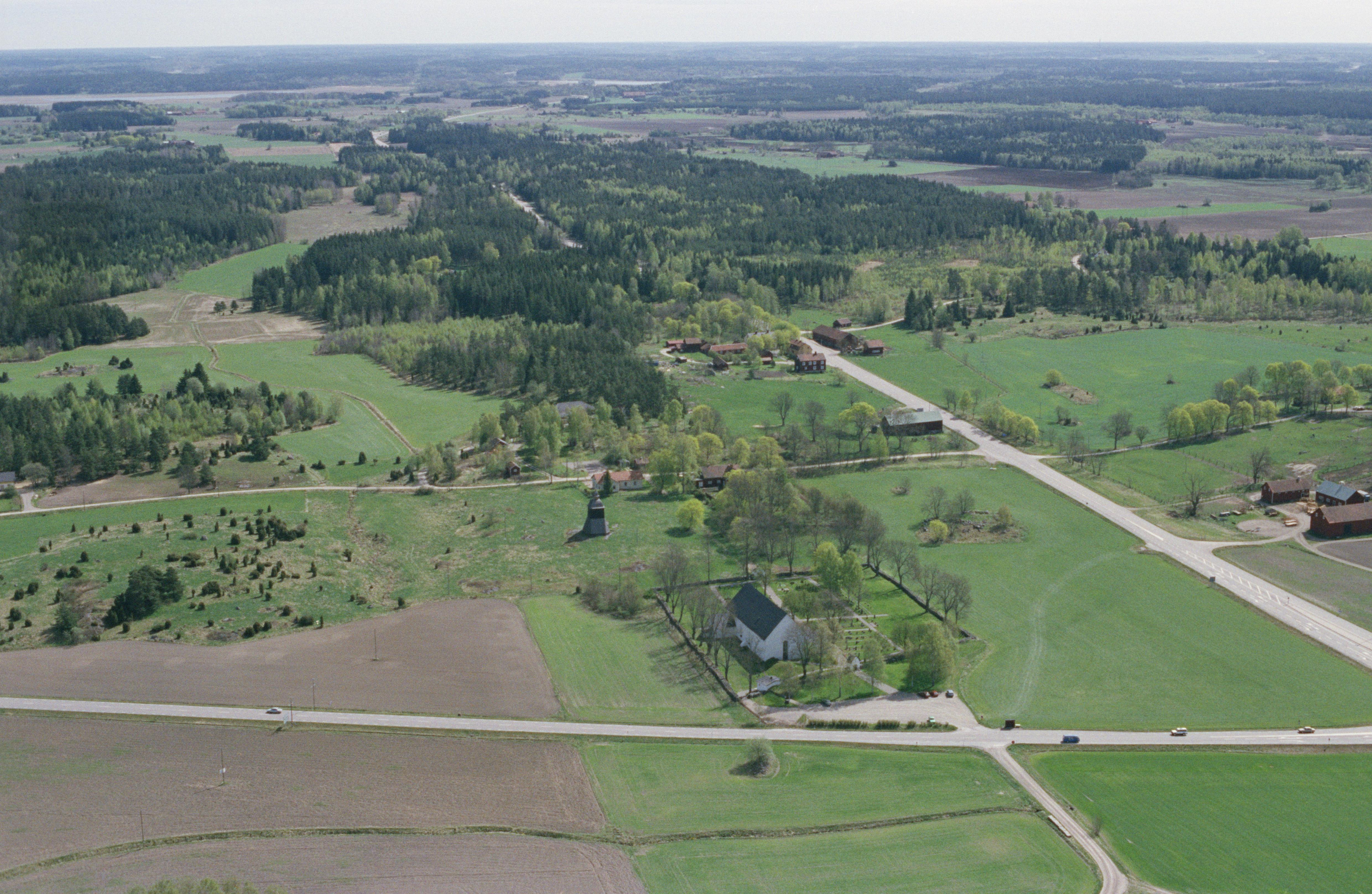 Beskrivning: Litslena kyrka och kyrkby. Bilden är tagen mot (väderstreck): Ö