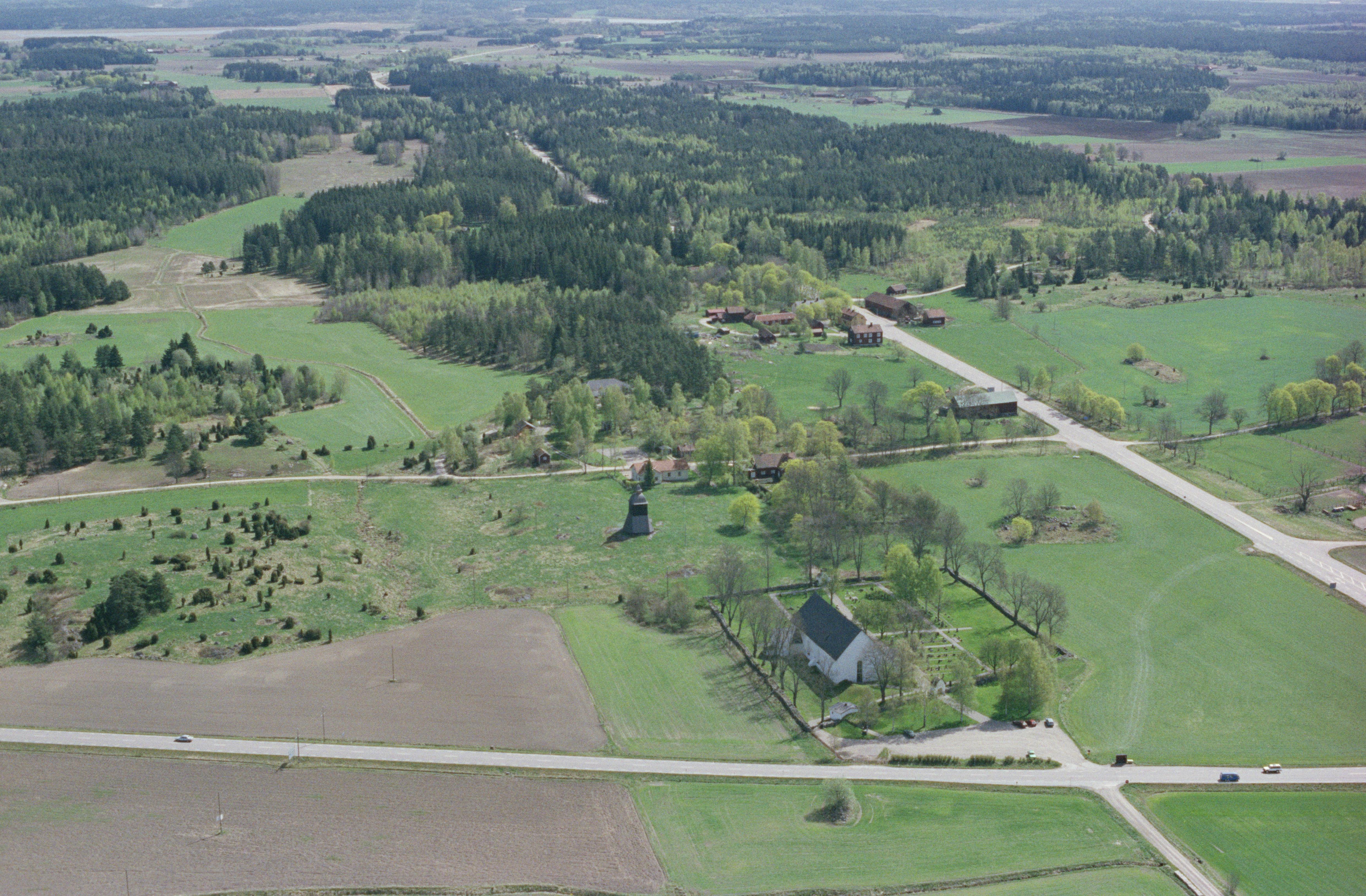 Beskrivning: Litslena kyrka och kyrkby. Bilden är tagen mot (väderstreck): Ö