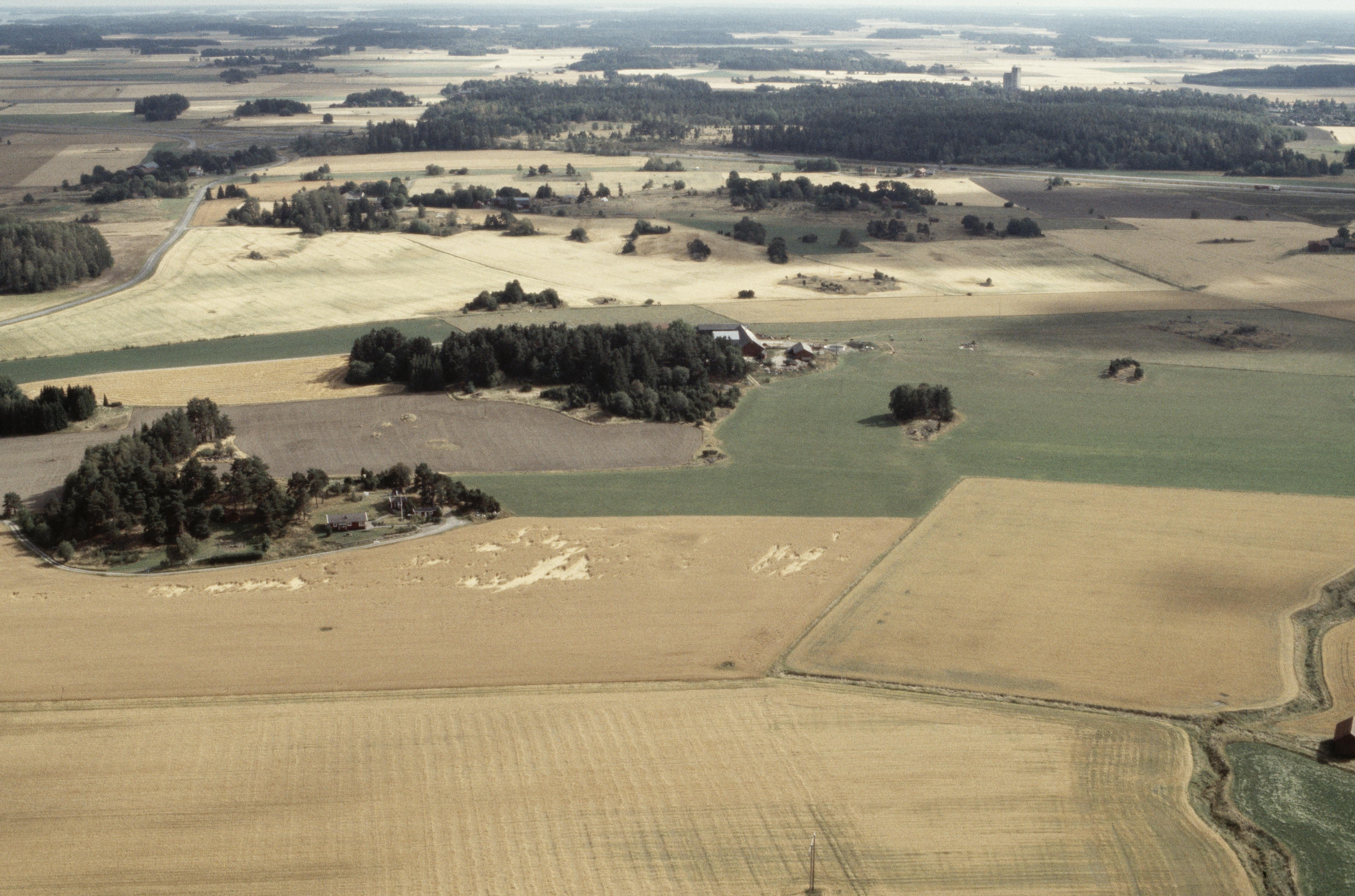 Beskrivning: Hummelsta gård till vänster om bildens mitt. Gravfält RAÄnr Litslena 197:1 uppe till höger. Bilden är tagen mot (väderstreck): SO