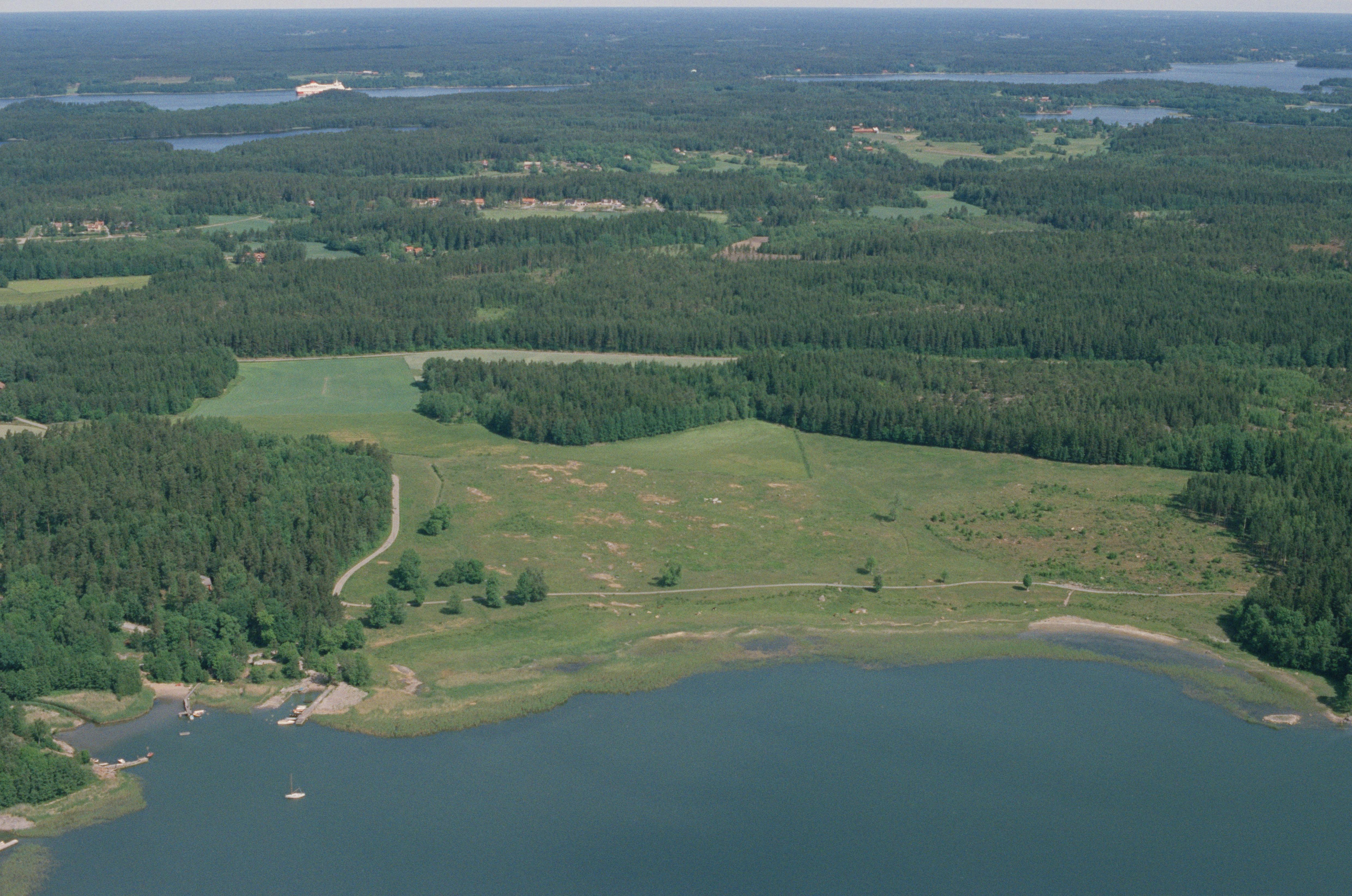 Beskrivning: Beskrivning: Ängsmark i Danebo by vid Norsviken på ön Ljusterö. Bilden är tagen mot (väderstreck): N Fotosyfte: Flygbildsdokumentation