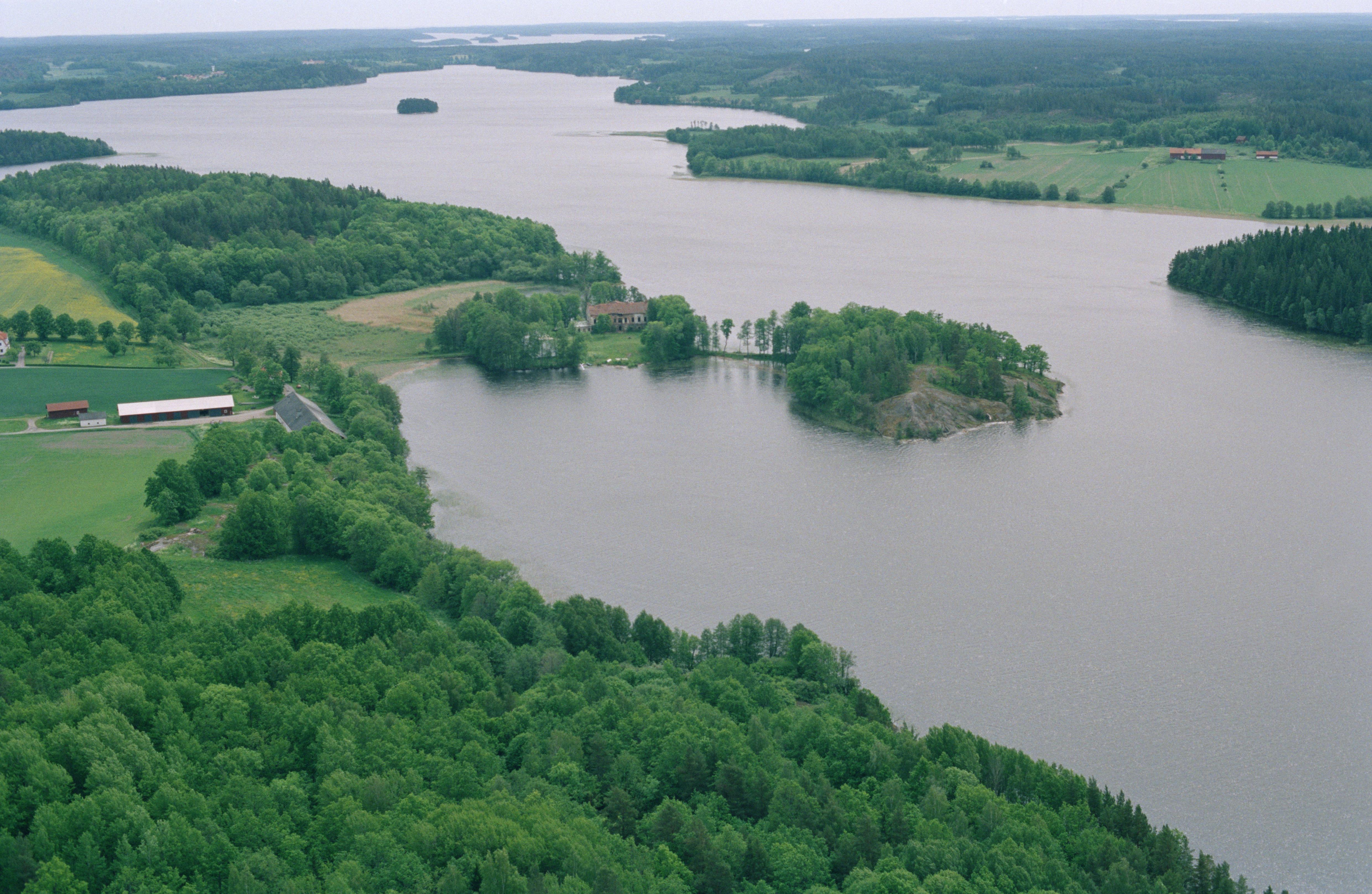 Beskrivning: Vinäs herrgård vid Storsjön, byggd på slottsruin Vinäs slott RAÄnr Västra Ed 191:1. På Slottsholmen bredvid lämningar efter borg Västra Ed 201:1. Bilden är tagen mot (väderstreck): SO
