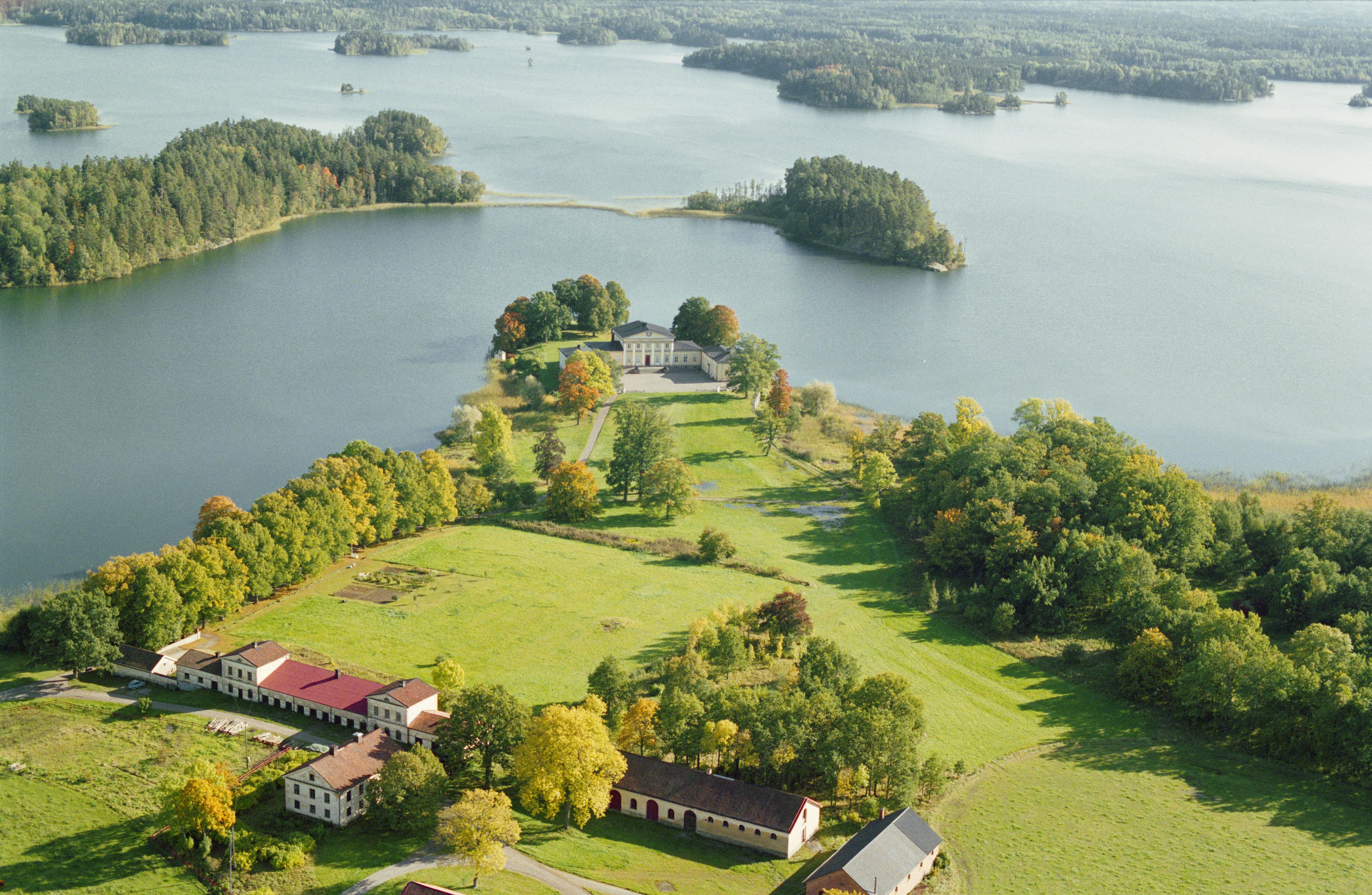 Beskrivning: Elghammars herrgård (skrivs även Älghammar) byggnadsminne RAÄnr Björnlunda 148:1. Vid bildens mitt Engelska udden vid sjön Lockvattnet. Bilden är tagen mot (väderstreck): SO