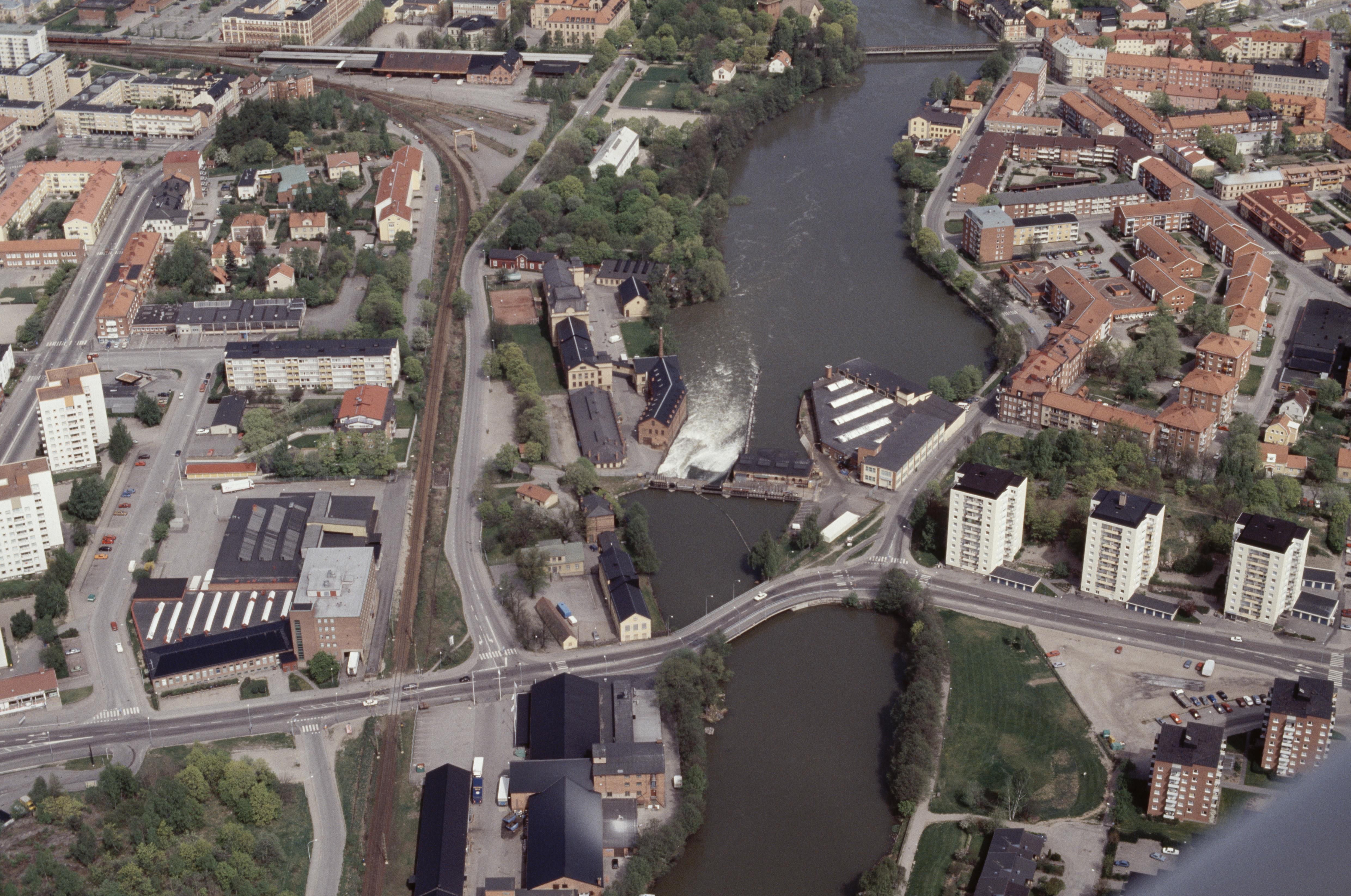 Beskrivning: Eskilstuna stad. Eskilstunaån och industriområde. Bilden är tagen mot (väderstreck): SSV