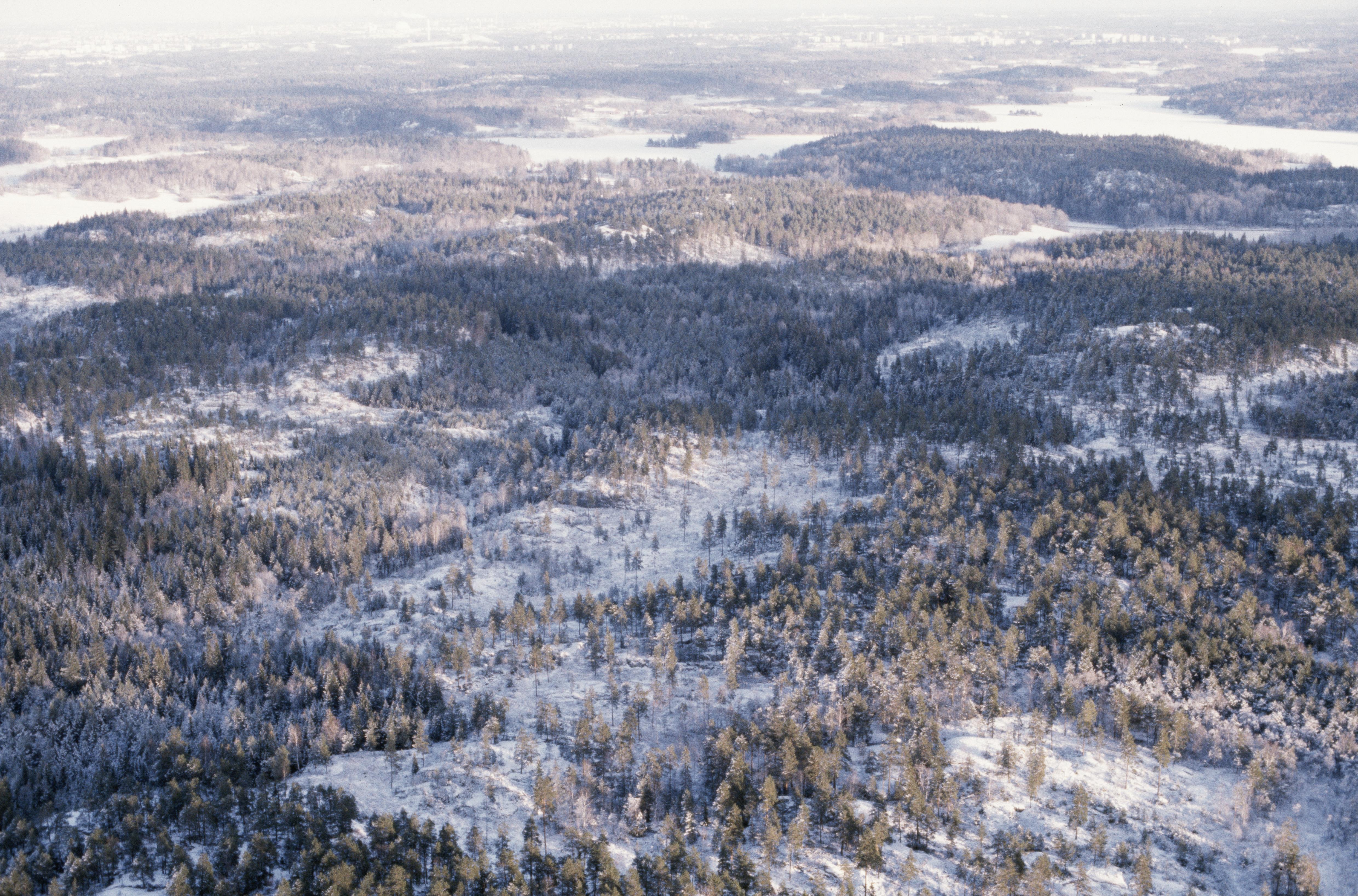 Beskrivning: Fornlämningsområde söder om Gladö Kvarn, norr om byn Östorp. Boplatser m.m. RAÄnr Huddinge 336:1, 339:1, 340:1 m.fl. I bildens övre del sjön Örlången, Högdalen och Stockholms stad. Bilden är tagen mot (väderstreck): NNO
