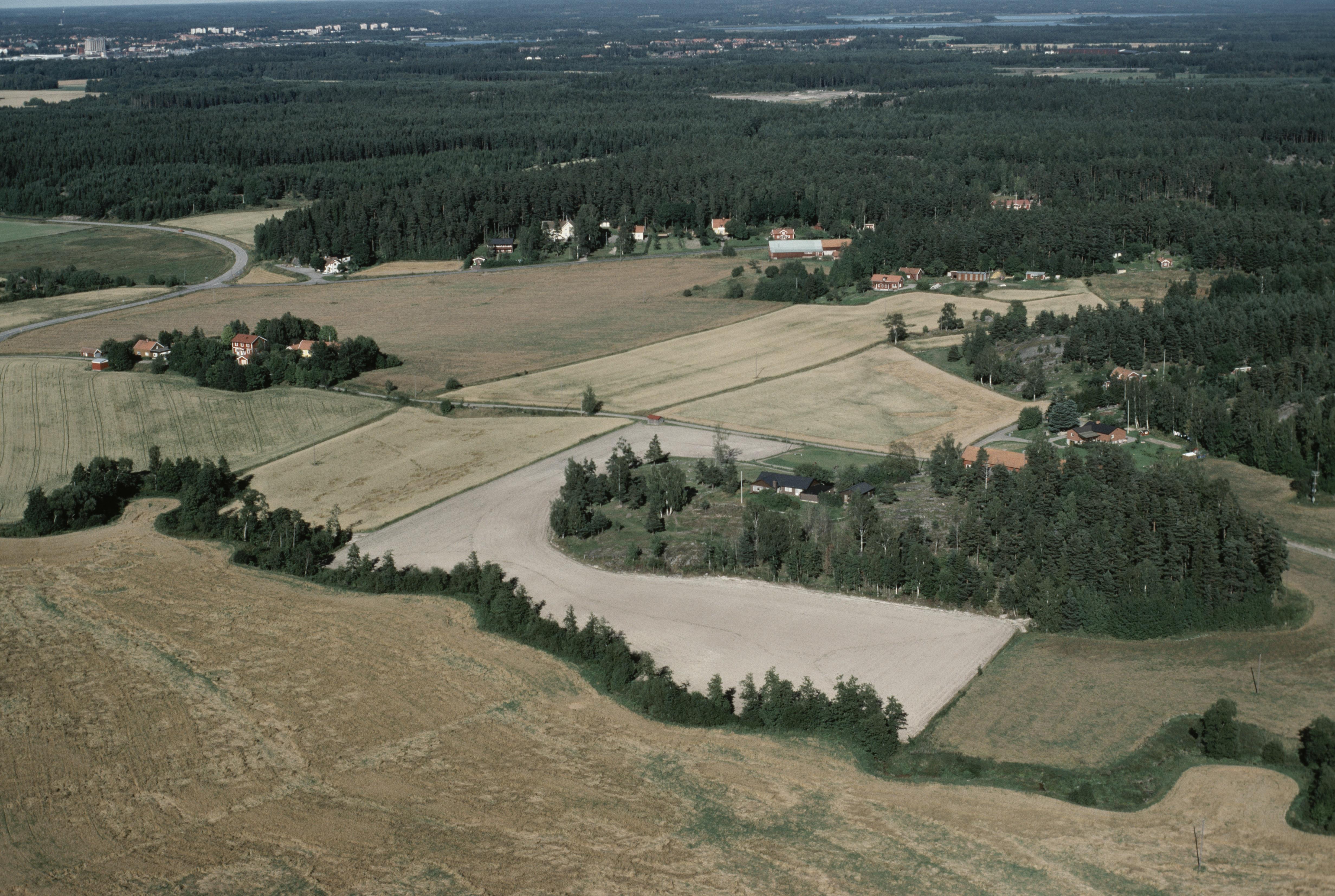 Beskrivning: Bränn-Ekebybäcken markerar gränsen mellan socknen Nyköping och Bergshammar (i bildens nedre del). Till höger om bildens mitt gravfält med hällristningar på berg RAÄnr Nyköping 187:1-5. Bilden är tagen mot (väderstreck): NO