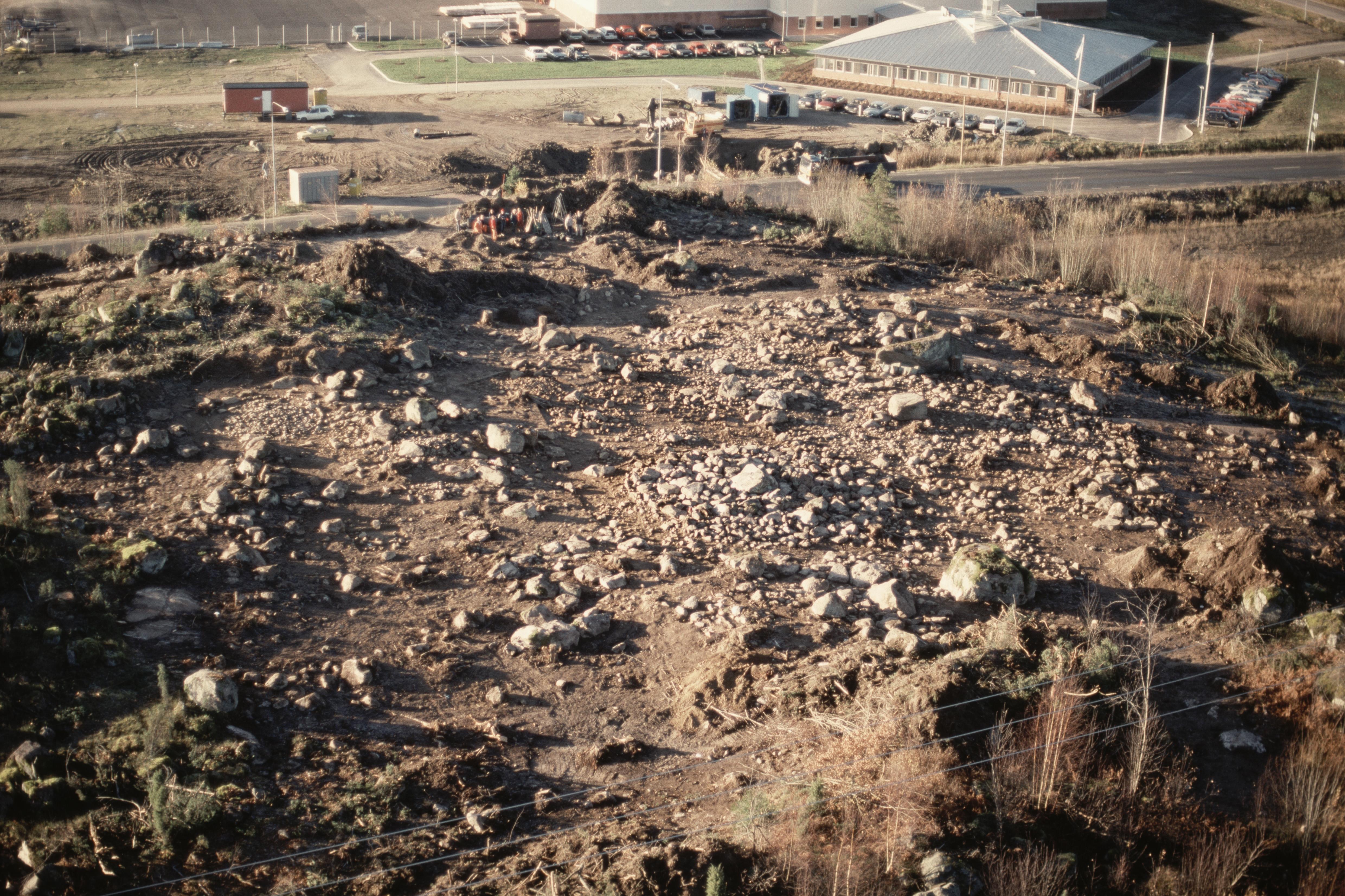 Beskrivning: Folkesta i nordvästra delen av tätorten Hällbybrunn. Vid bildens mitt arkeologisk undersökning av grav- och boplats RAÄnr Torshälla 145:1 innan nybyggnation. Bilden är tagen mot (väderstreck): VSV