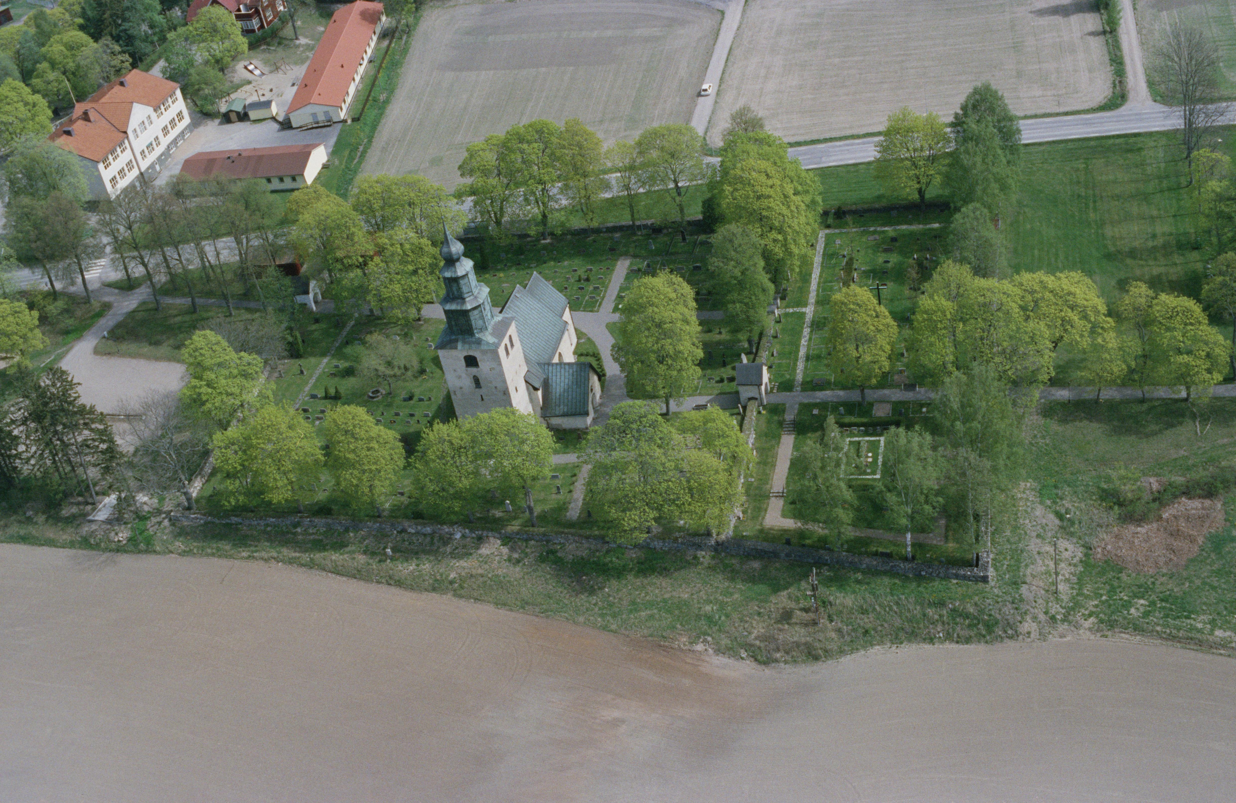 Beskrivning: Tumbo tätort. Tumbo kyrka söder om Tumboåsen. Bilden är tagen mot (väderstreck): ONO