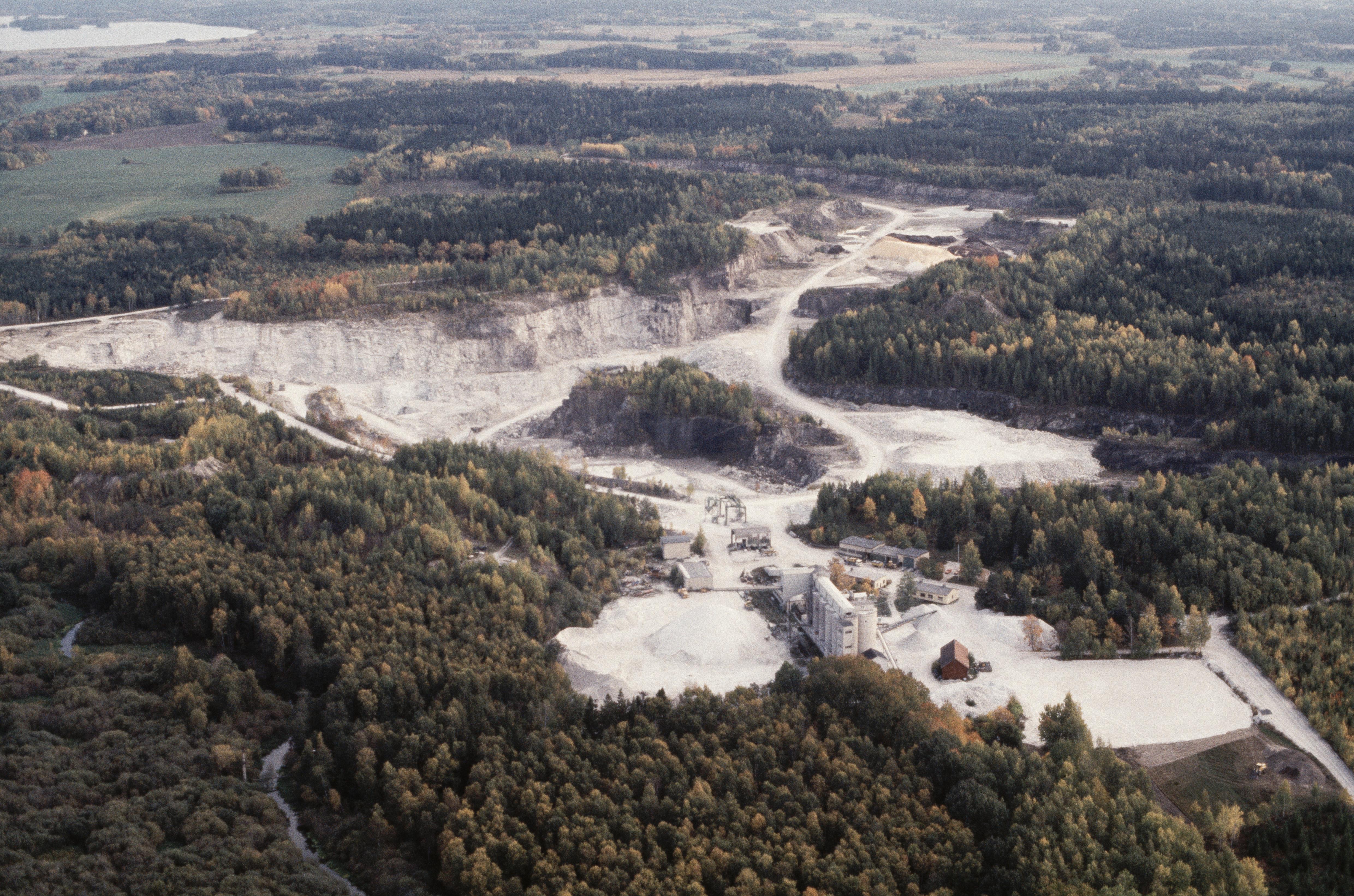 Beskrivning: Forsby kalkbrott vid nordvästra delen av sjön Öljaren. Här startar kalklinbanan mellan Forsby (i Österåkers socken) och Köping (i Köpings socken). I områdets södra del fornlämning / stentäkt RAÄnr Österåker 129. Bilden är tagen mot (väderstreck): S