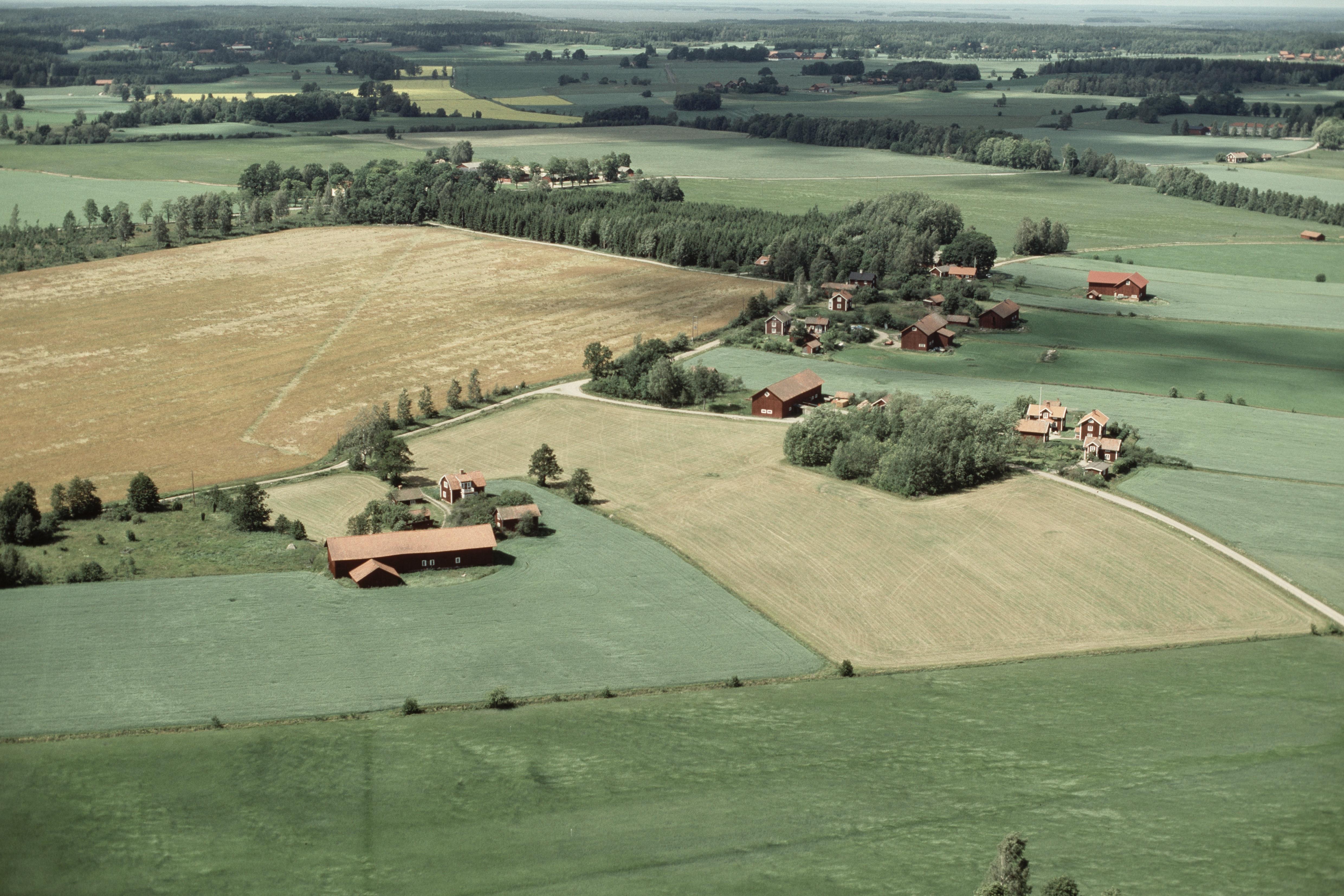 Beskrivning: Hulla by. Hulla gård till vänster i bildens övre del. Till vänster om bildens mitt fyndplats (stenyxor) RAÄnr Österåker 3:1. Gärsån uppe till höger. Bilden är tagen mot (väderstreck): NV