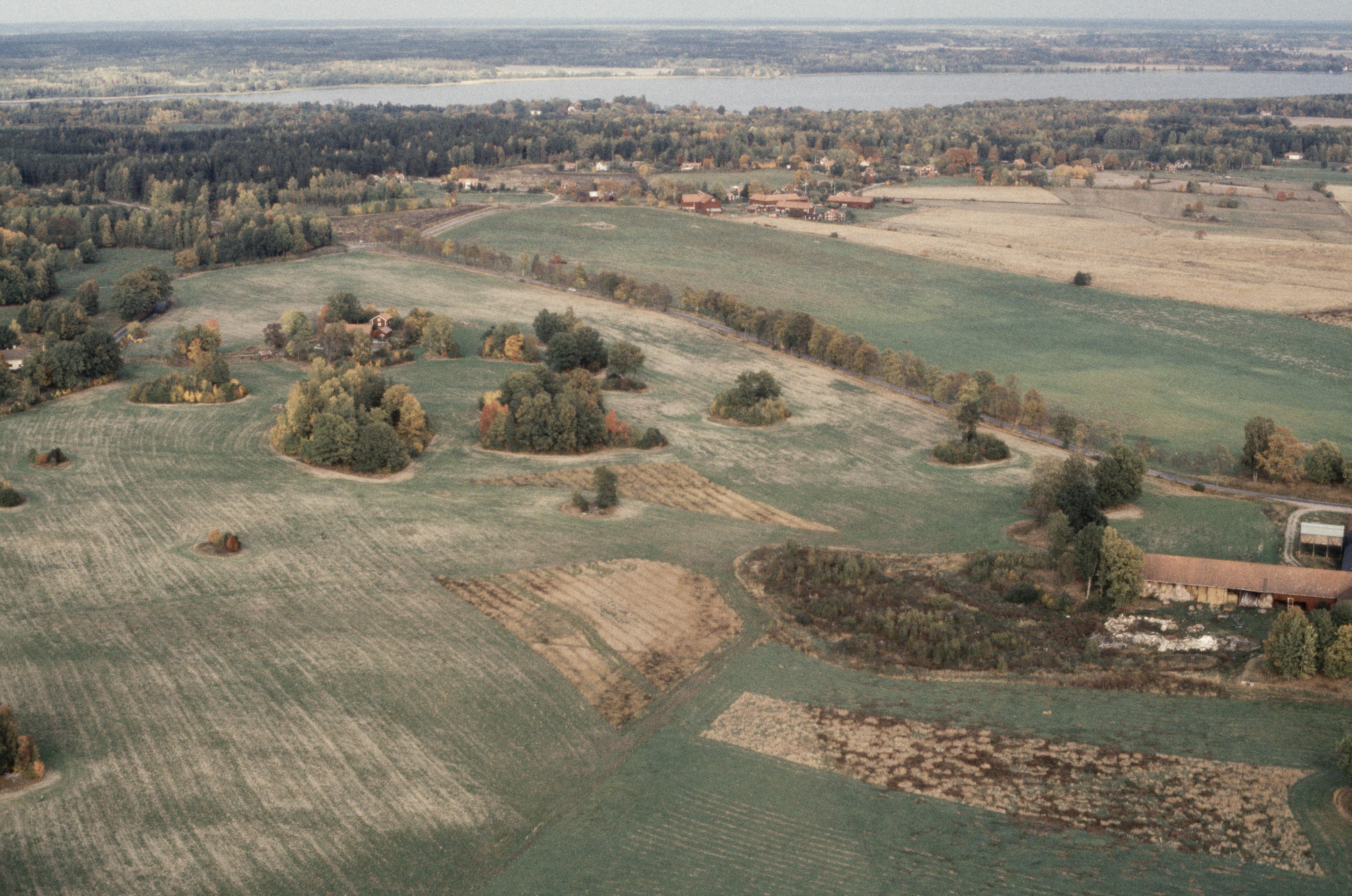 Beskrivning: Sjöäng gård nere till höger. I bildens övre del Ättersta by och sjön Öljaren. Bilden är tagen mot (väderstreck): NO