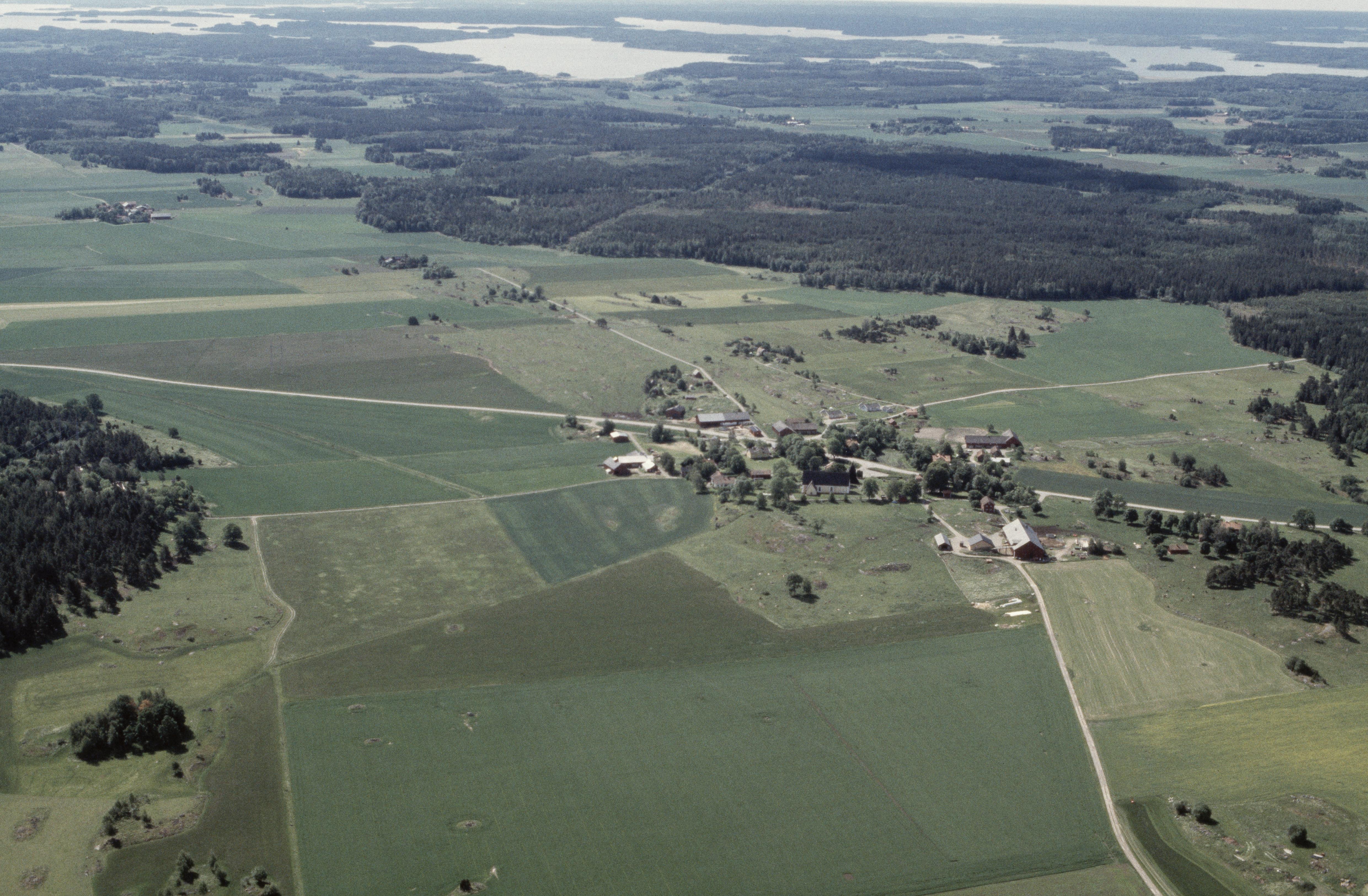 Beskrivning: I bildens nedre del till höger område med hällristningar RAÄnr Boglösa 172:1-7. Vid bildens mitt Boglösa kyrka och kyrkby. I bildens övre del socknen Lillkyrka, Vallby, Kungs-Husby m.fl. mot Stabyfjärden i Mälaren. Bilden är tagen mot (väderstreck): S