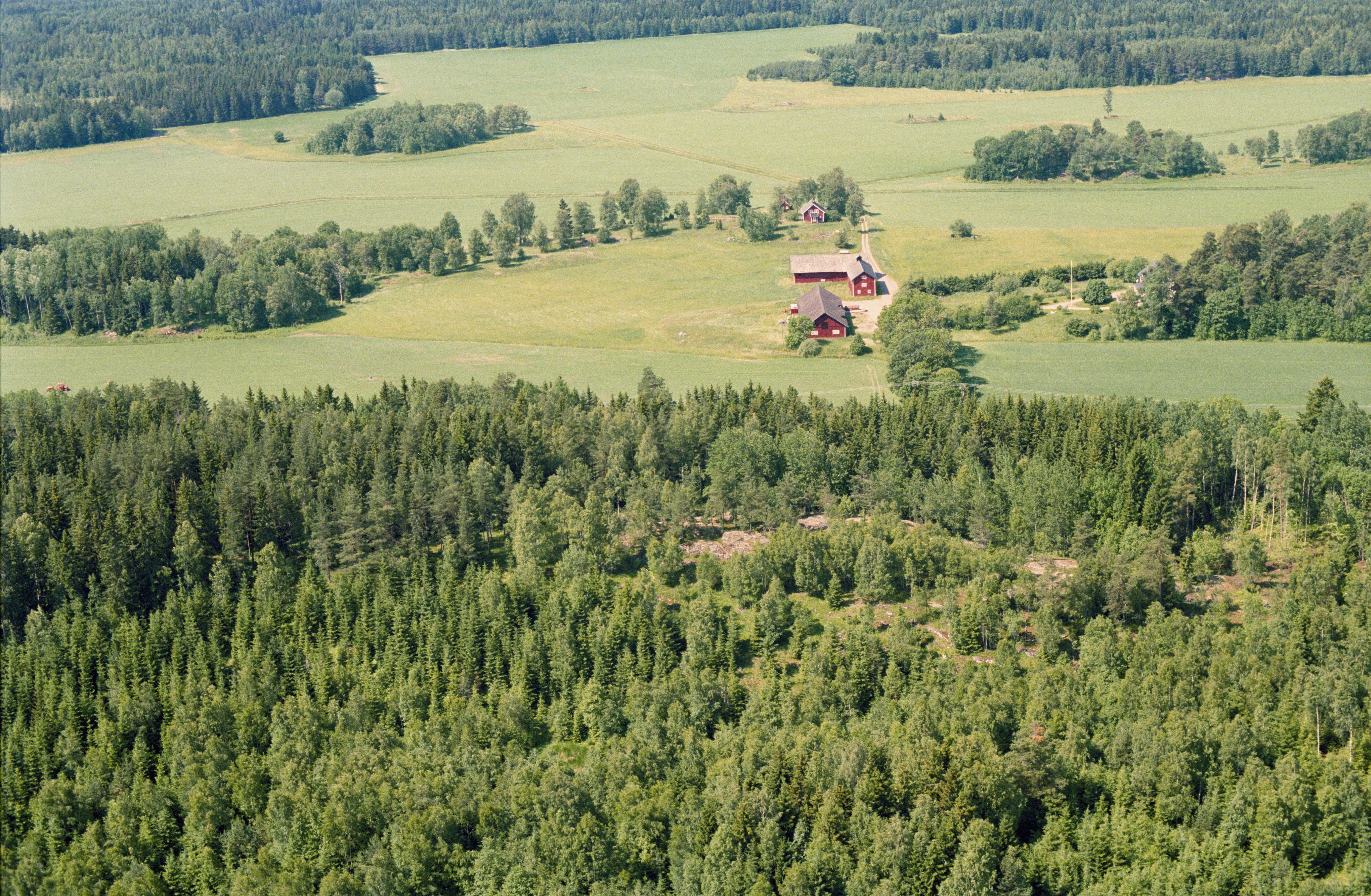 Beskrivning: I bildens nedre del fornborg RAÄnr Bro 86:1 vid Sätra gård. Bilden är tagen mot (väderstreck): VSV