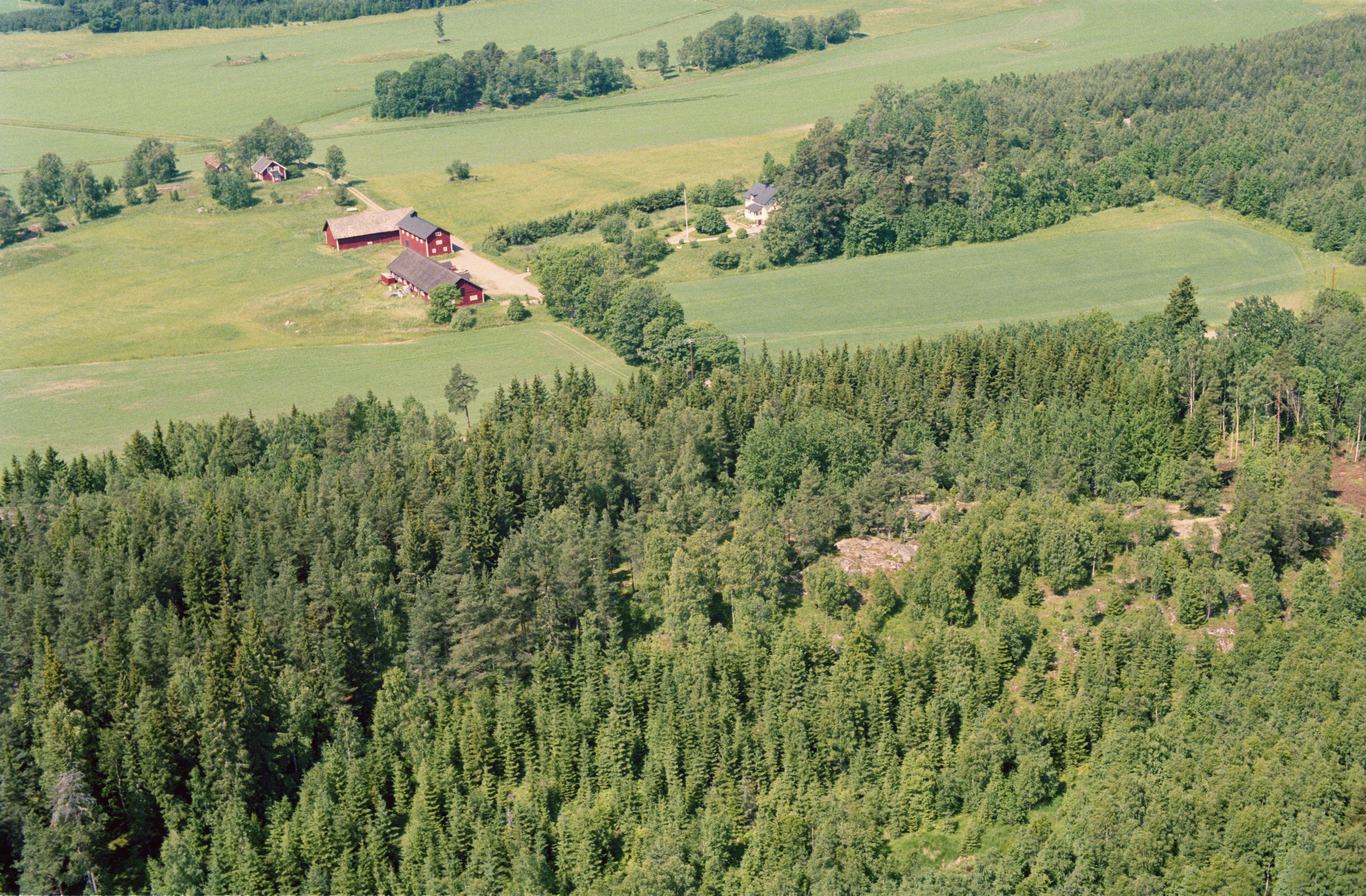 Beskrivning: I bildens nedre del fornborg RAÄnr Bro 86:1 vid Sätra gård. Bilden är tagen mot (väderstreck): V
