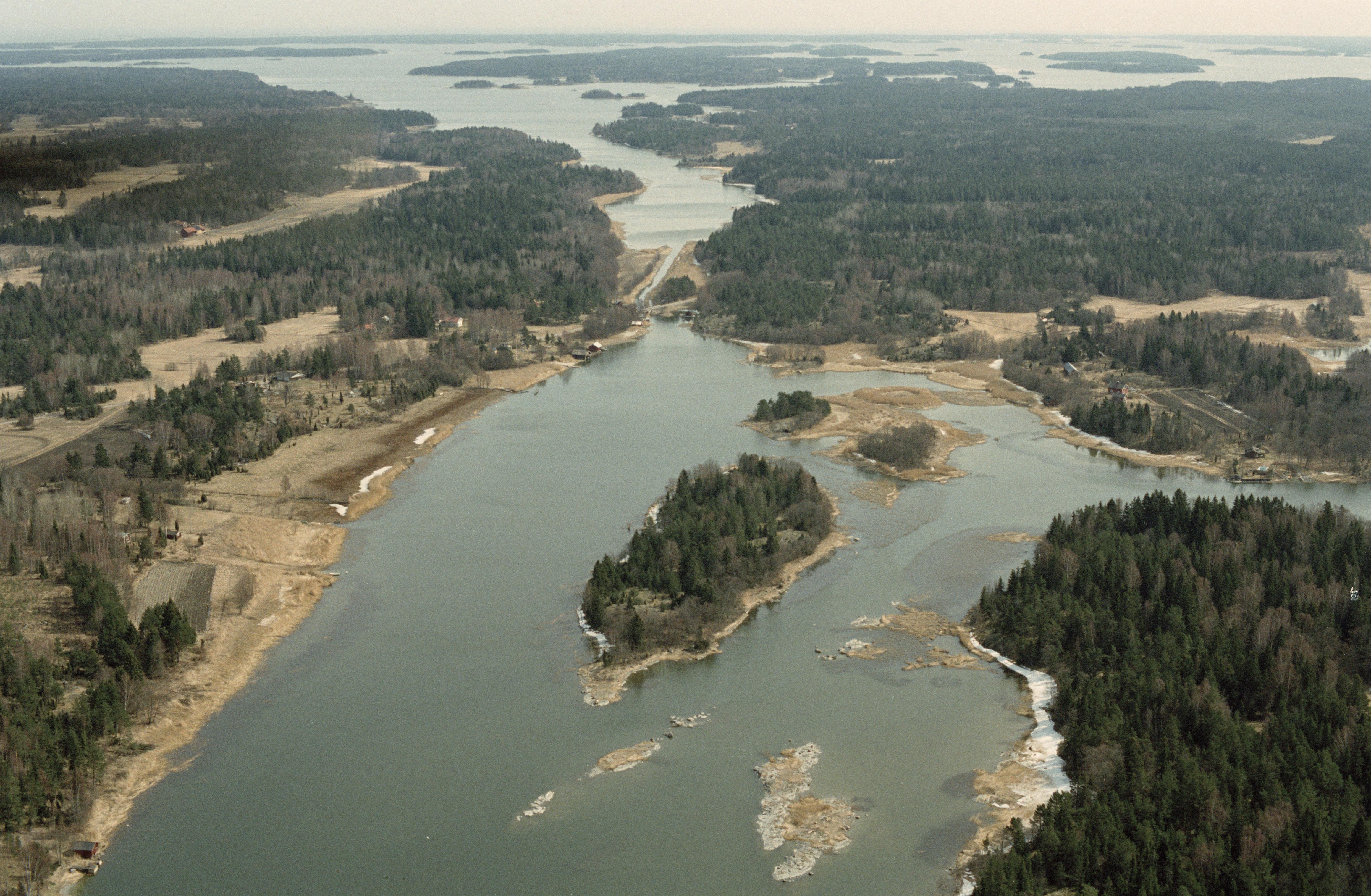 Beskrivning: Östhammarsfjärden mot Raggaröfjärden. Söderön till vänster och Tvärnö uppe till höger. Till vänster Tuskö by. Vid bildens mitt Gruvskäret i Tuskösundet med gruvområde RAÄnr Börstil 256:1. Hargs socken i bildens övre del till höger. Bilden är tagen mot (väderstreck): SO