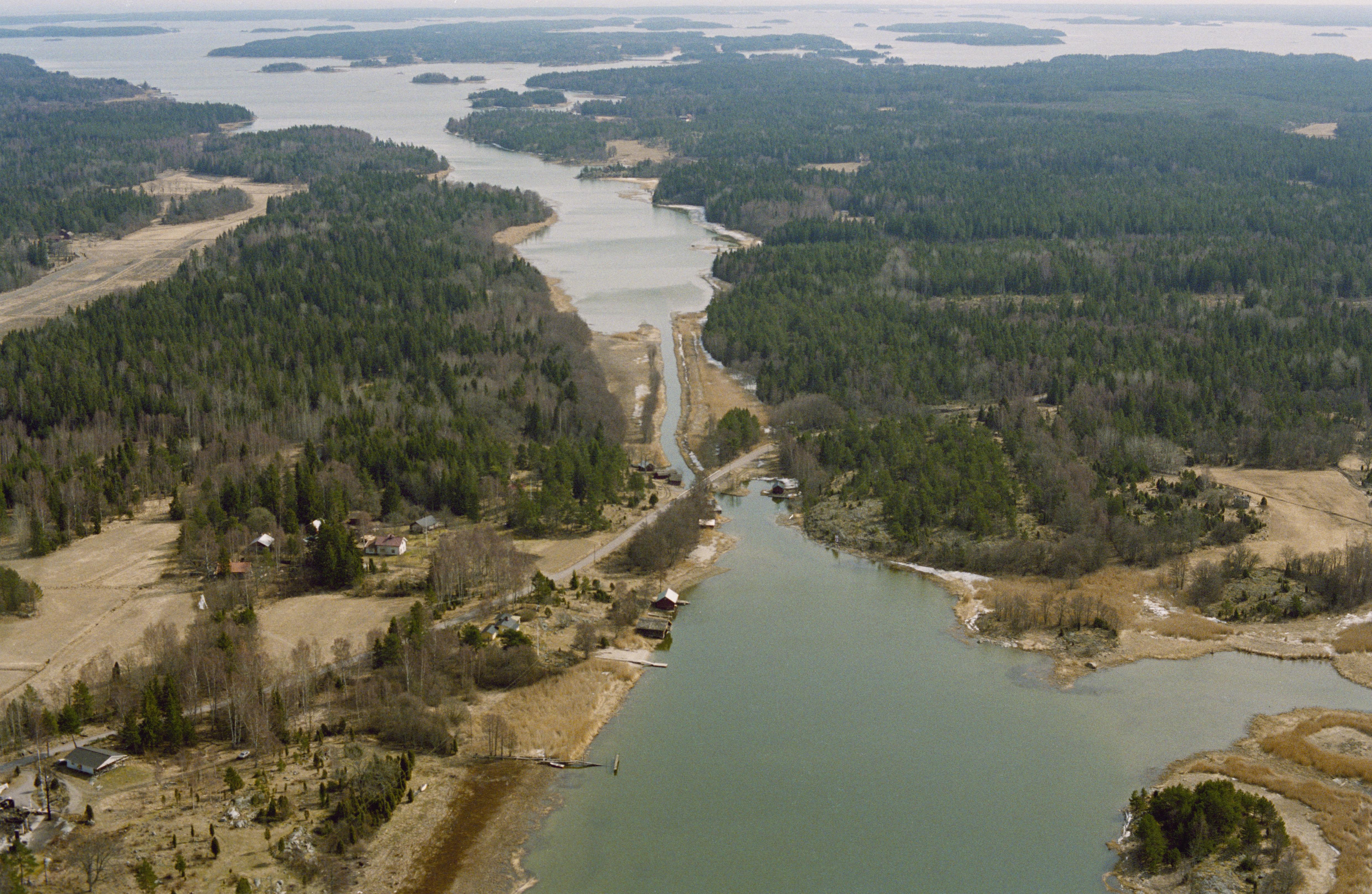 Beskrivning: Östhammarsfjärden mot Raggaröfjärden. Söderön till vänster och Tvärnö uppe till höger. Till vänster Tuskö by. Vid bildens mitt Gruvskäret i Tuskösundet med gruvområde RAÄnr Börstil 256:1. Hargs socken i bildens övre del till höger. Bilden är tagen mot (väderstreck): SO