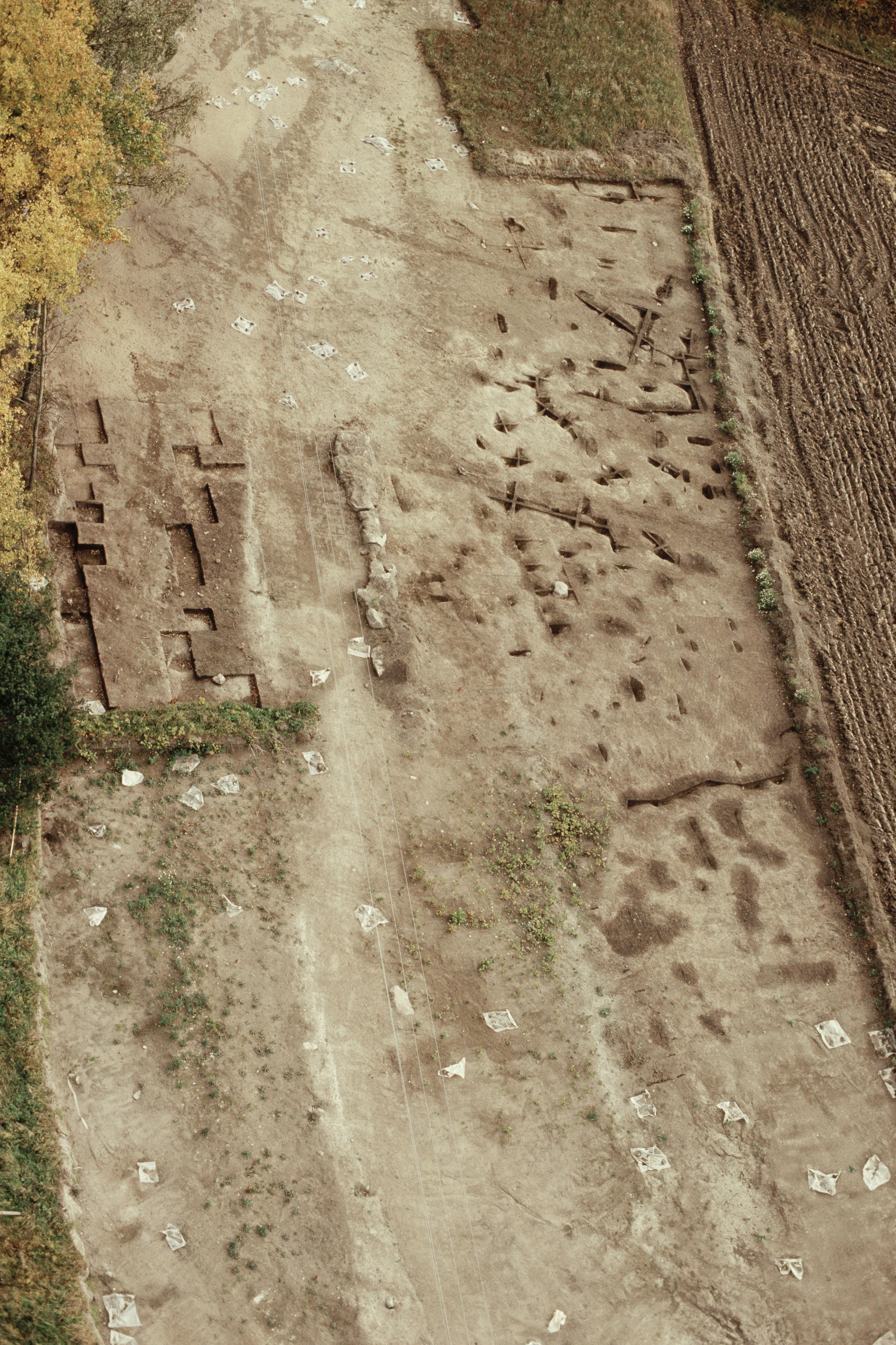 Beskrivning: Arkeologisk undersökning vid fornlämningsområdet Annelund innan vägbygge av E18 norrväst i Enköpings stad. Grav- och boplatsområde med hällristningar, stensättningar m.m. RAÄnr Enköping 16:1-2, 17:1-6, 25:1-2 m.fl. Bilden är tagen mot (väderstreck): Ö