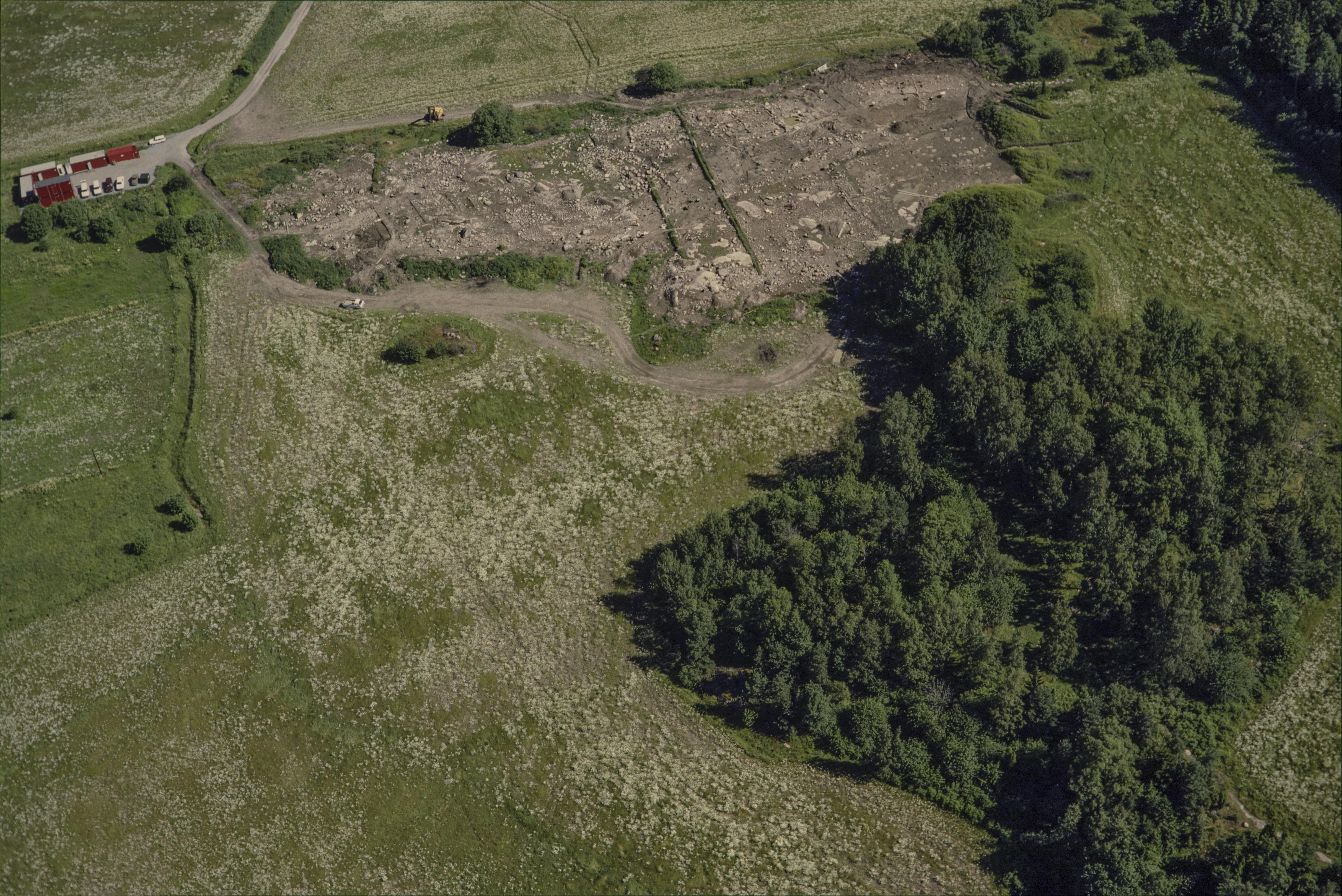Beskrivning: Arkeologisk undersökning innan bygging av bostäder. Gravfält och boplatsområde RAÄnr Fresta 147:1. Bilden är tagen mot (väderstreck): NNO