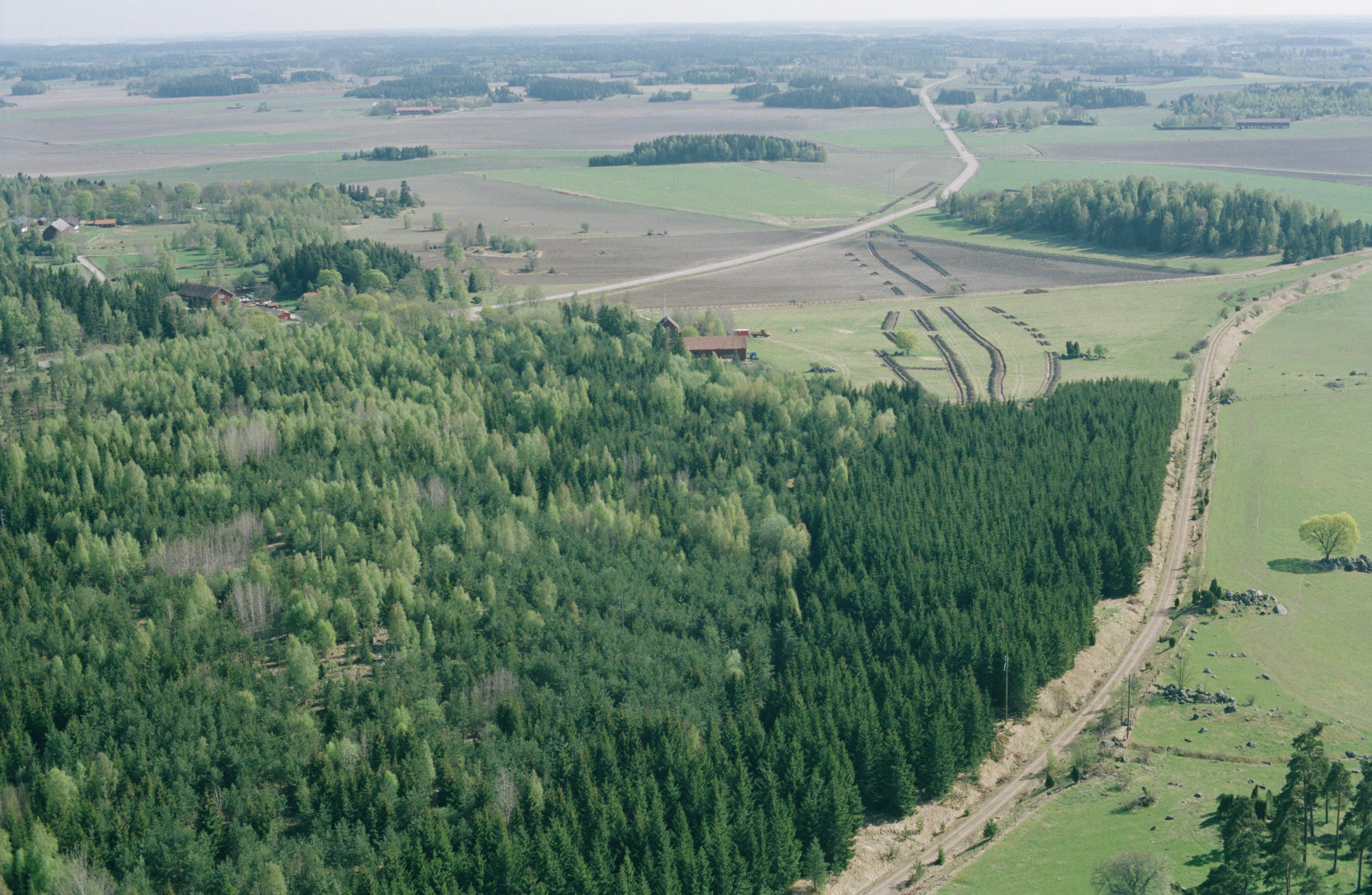 Beskrivning: Beskrivning: Till höger över bildens mitt vägstakning och arkeologisk undersökning innan bygge av väg 55 vid bo- och gravplats RAÄnr Fröslunda 100:1 i Varsta by. I bilddens övre del socknen Giresta och Litslena. Bilden är tagen mot (väderstreck): S Fotosyfte: Flygbildsdokumentation