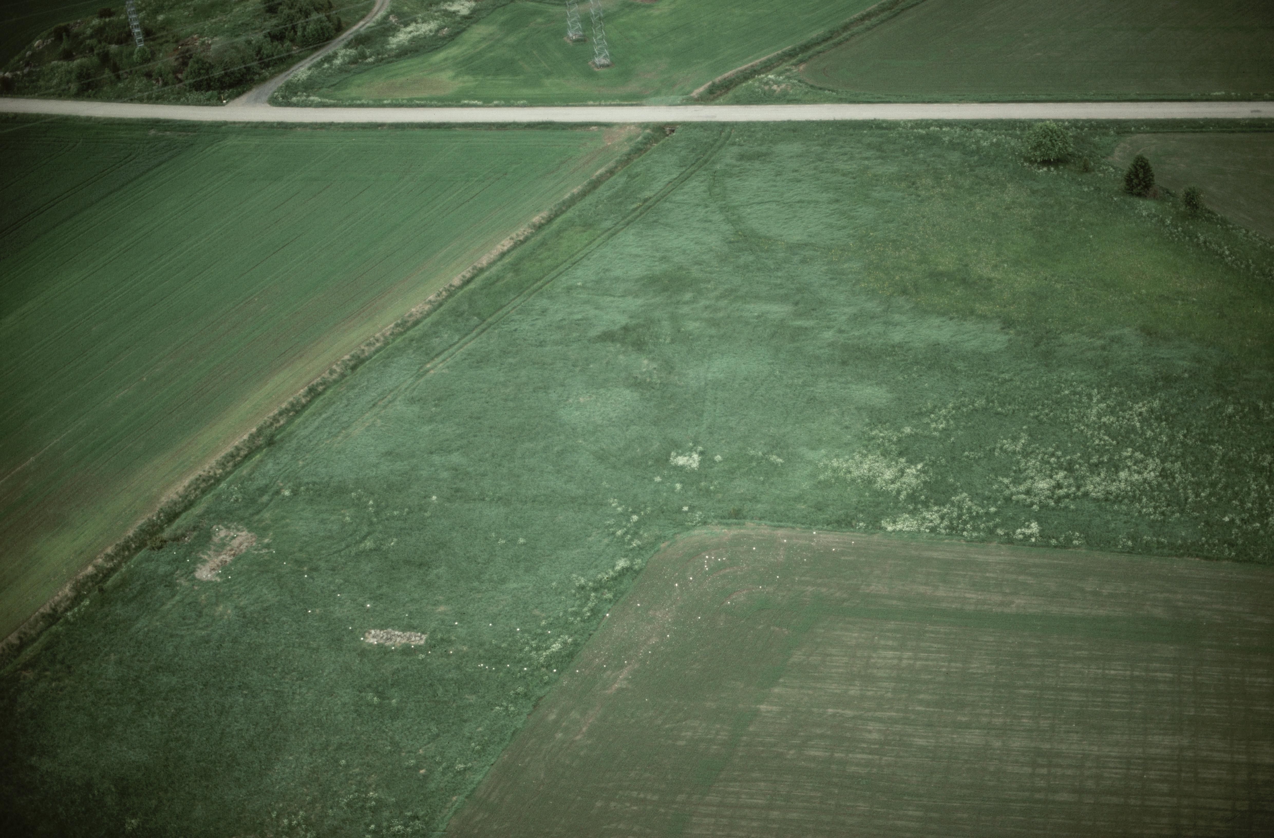 Beskrivning: Skogslövs forntida väg mellan Ör i Hjälsta socken och Östersta i Giresta socken. I bildens övre del området Ör vid Dumdals dike som markerar gränsen mot Giresta socken (i bildens nedre del). Uppe till vänster stensättning RAÄnr Hjälsta 44:1. Bilden är tagen mot (väderstreck): VSV