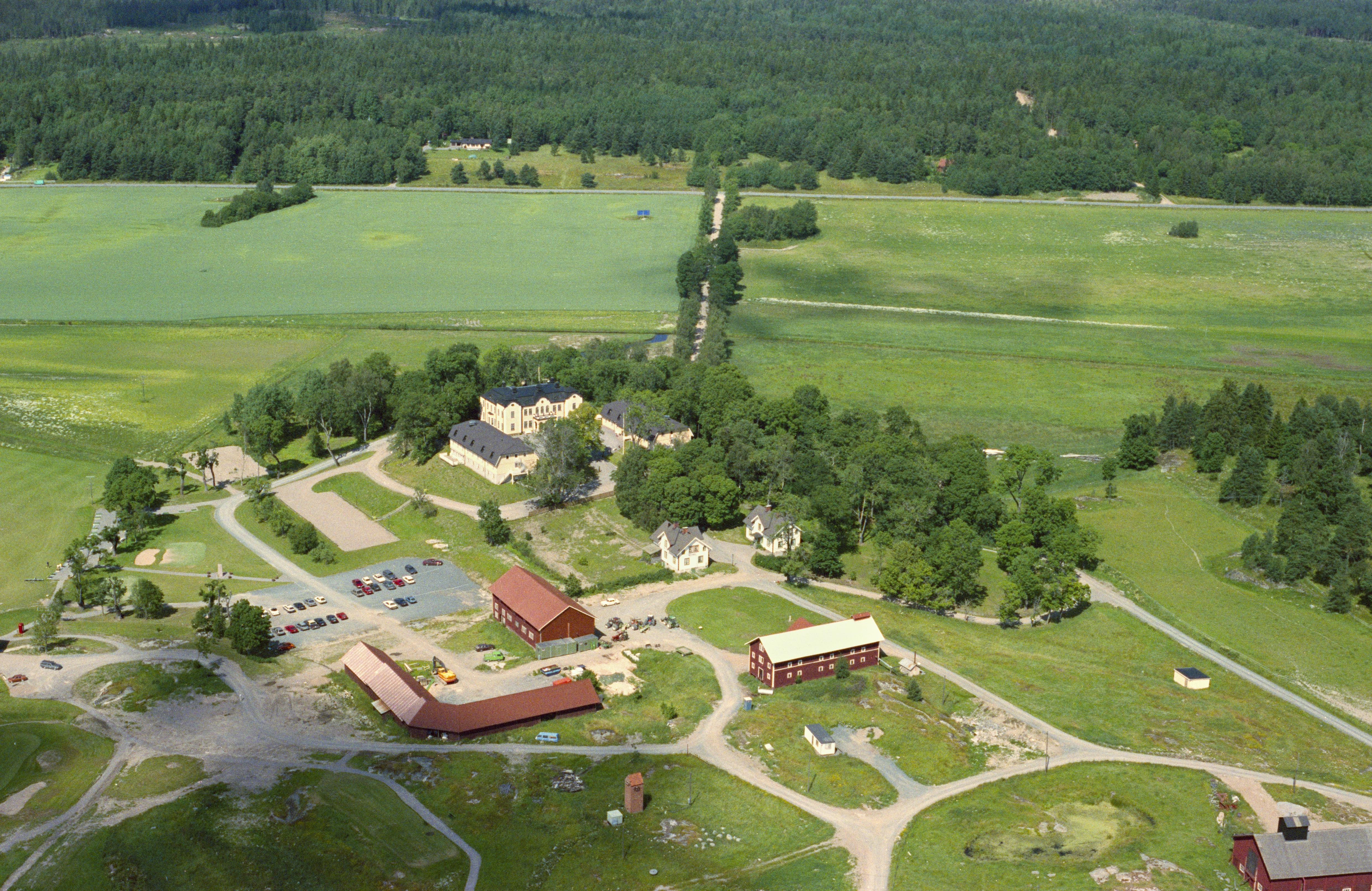 Beskrivning: Johannesbergs slott. Vid vägslutet/korsningen i mitten av bildens övre del område med hällristning RAÄnr Gottröra 57:1. Bilden är tagen mot (väderstreck): N