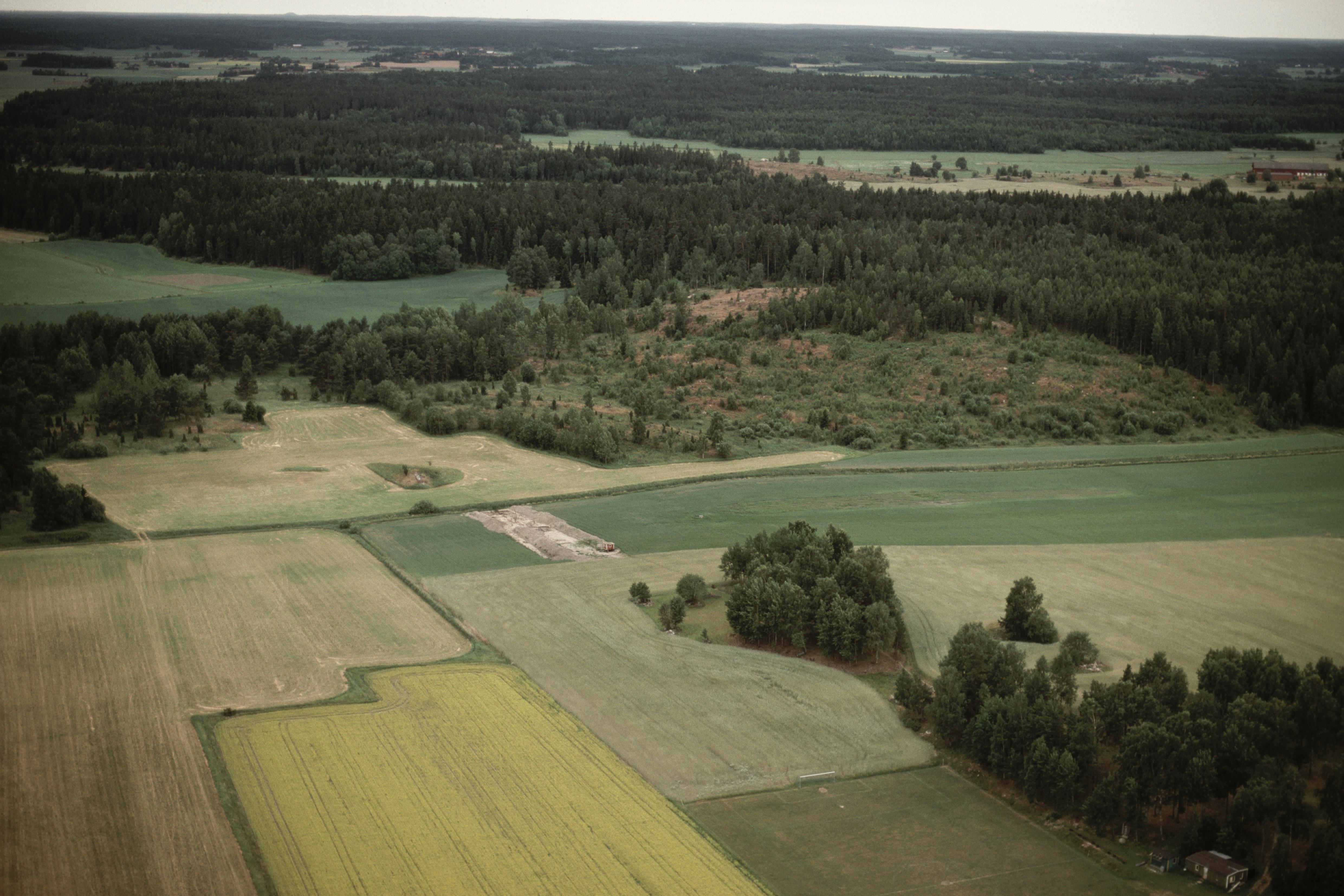 Beskrivning: Vid bildens mitt arkeologisk undersökning av bro och fornväg RAÄnr Gottröra 64:1 vid Lindbergaån. Bilden är tagen mot (väderstreck): S