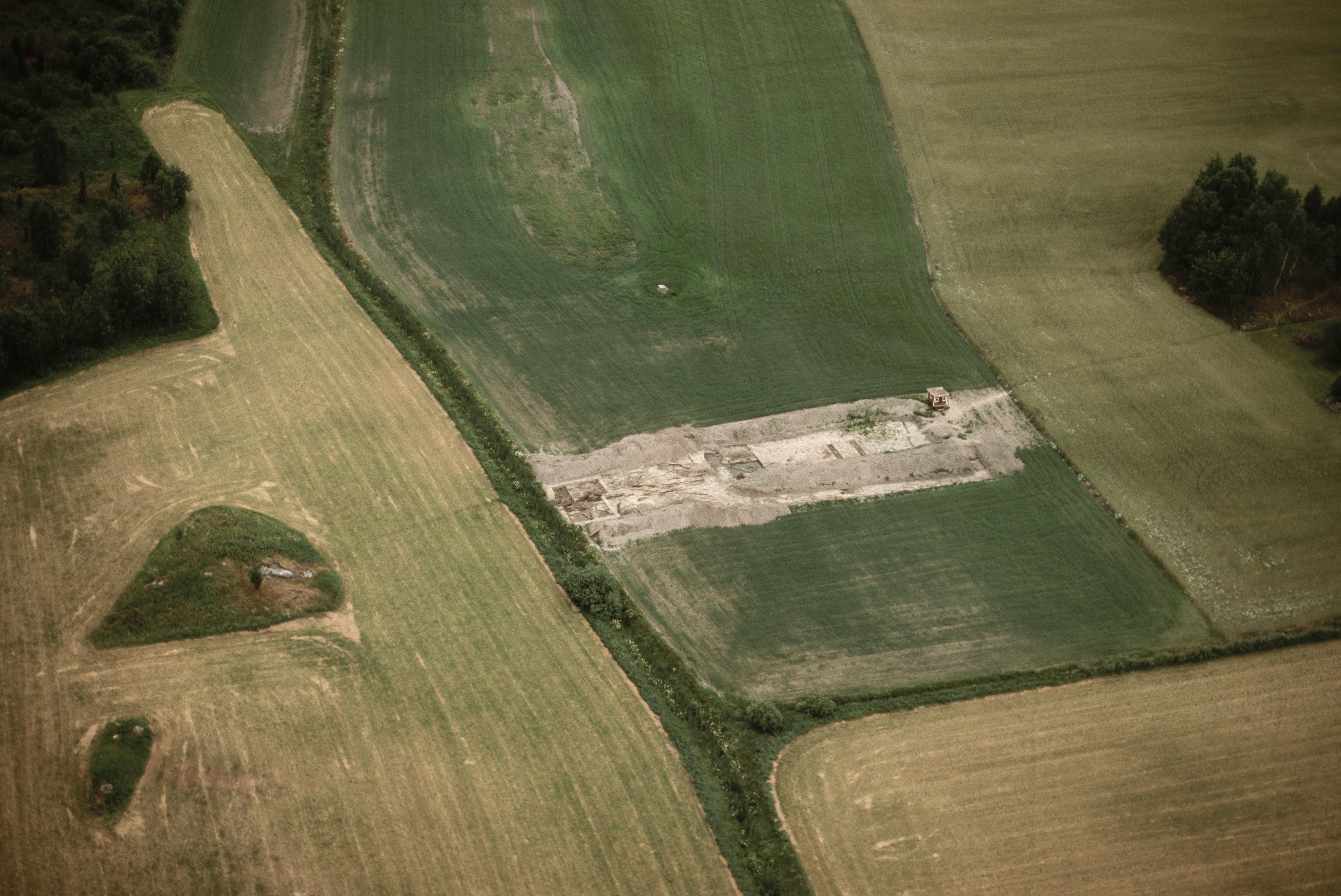 Beskrivning: Avspärrning / arkeologisk undersökning av fornväg RAÄnr Gottröra 64:1 vid Lindbergaån. Bilden är tagen mot (väderstreck): V