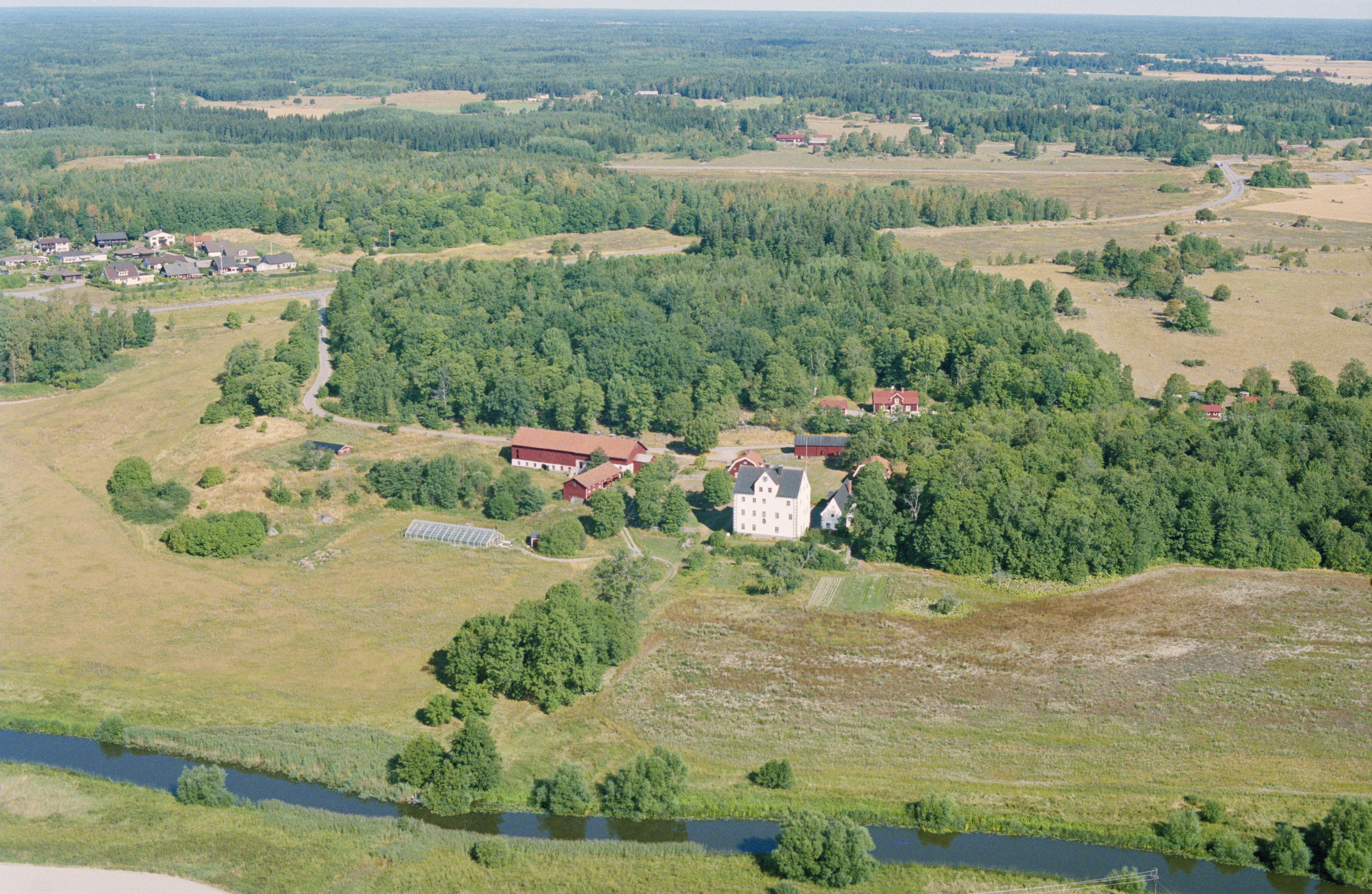 Beskrivning: Salnecke slott RAÄnr byggnadsminne Gryta 82:1 vid Örsundaån. Giresta socken i bildens nedre kant. Bilden är tagen mot (väderstreck): NNV